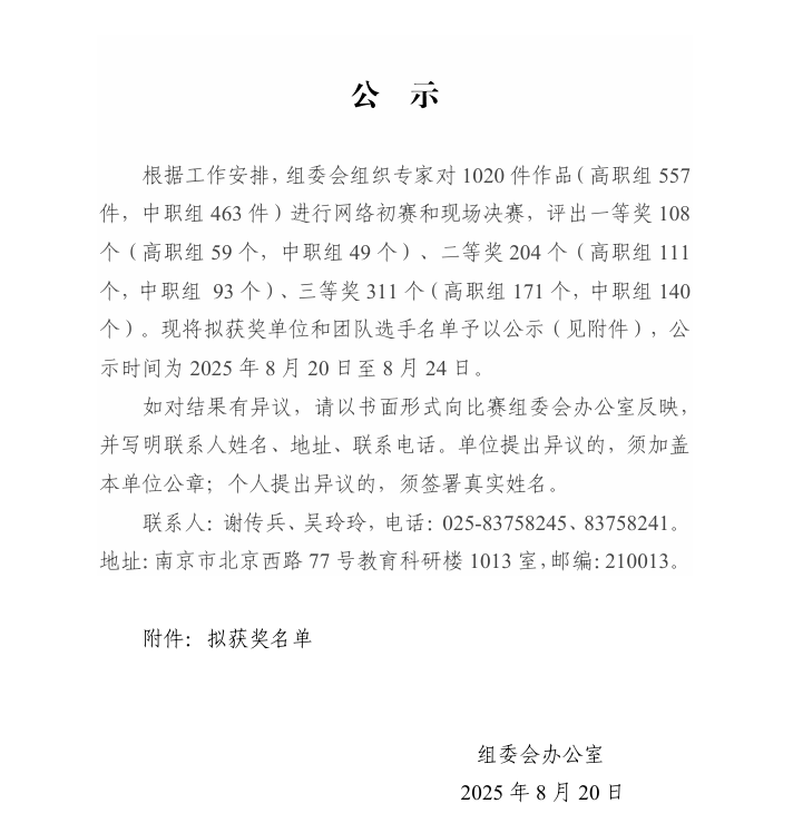 沈芳老师团队获2025年江苏省职业院校教学能力比赛中职组一等奖