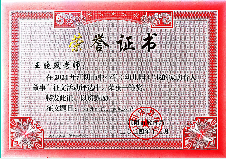 季春花名师工作室成员王晓燕老师在江阴市征文活动中获得一等奖 2025-09-29