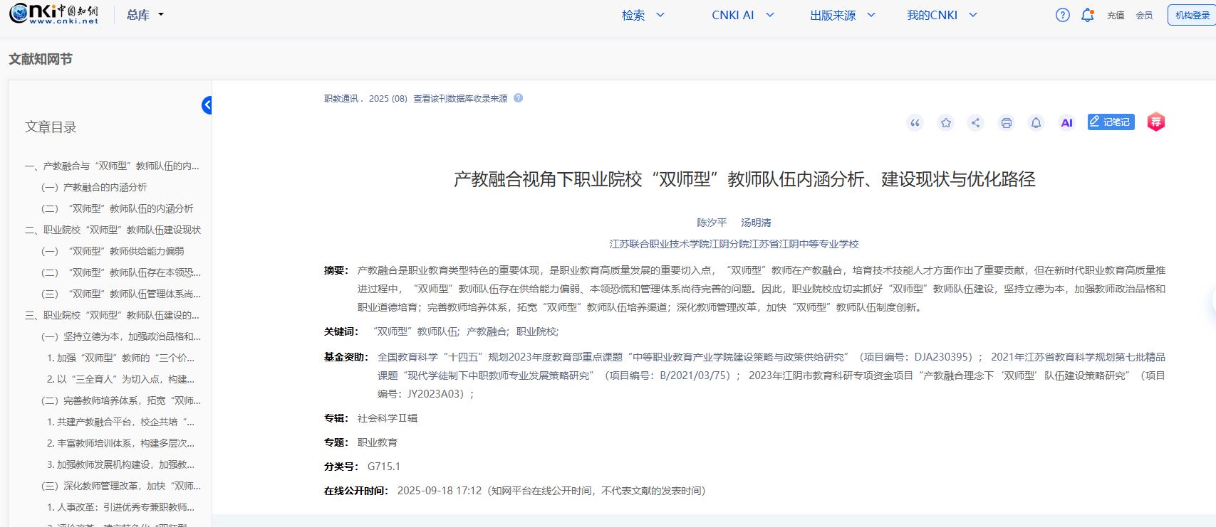 工作室成员老师论文发表《职教通讯》(陈汐平) 2025-09-29