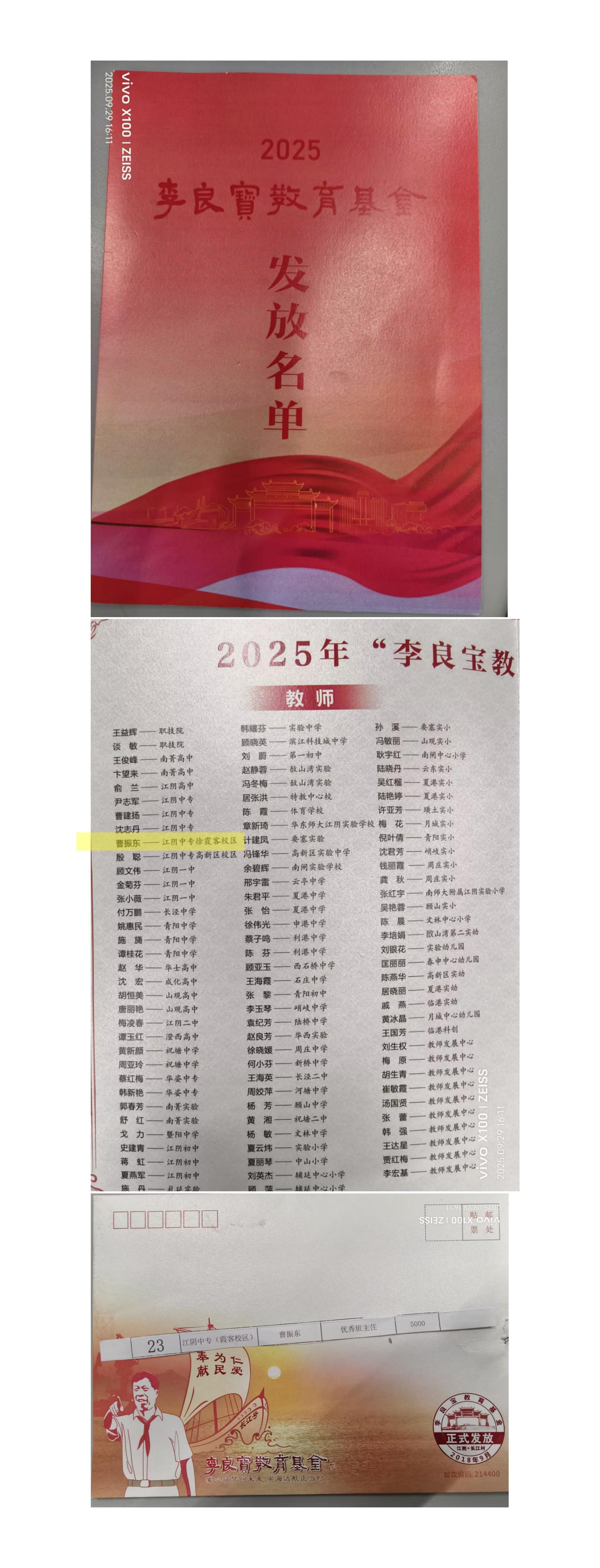 季春花名师工作室成员曹振东老师在2025年江阴市“李良宝教育基金”评选中被评为“优秀班主任”