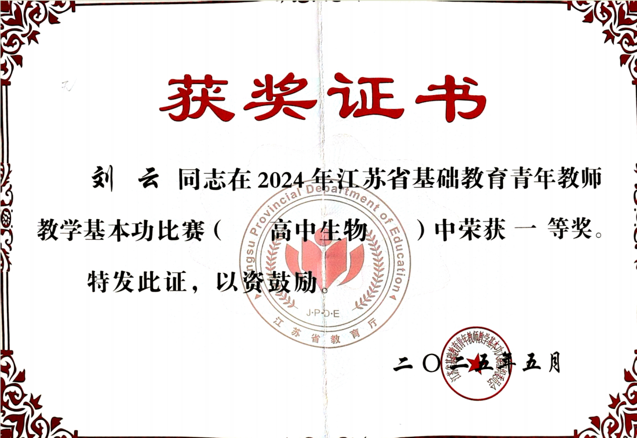 江苏省基础教育青年教师教学基本功大赛一等奖