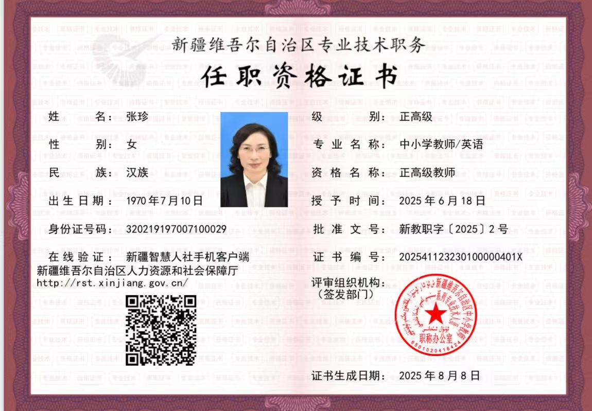 喜报--张珍老师晋升正高级教师 2025-10-10
