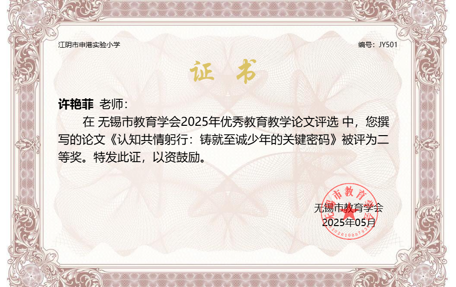 沈晔名师工作室许艳菲论文获无锡市二等奖