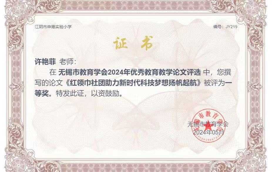 网站类目:学科比赛情况 姓名:许艳菲 所在单位:江阴市申港实验小学 获奖类别: 获奖级别:市级 获奖等级: 获奖时间:2024-05-28 评比部门: 发表刊物: 刊物级别:国家级 发表时间:2025-10-11
