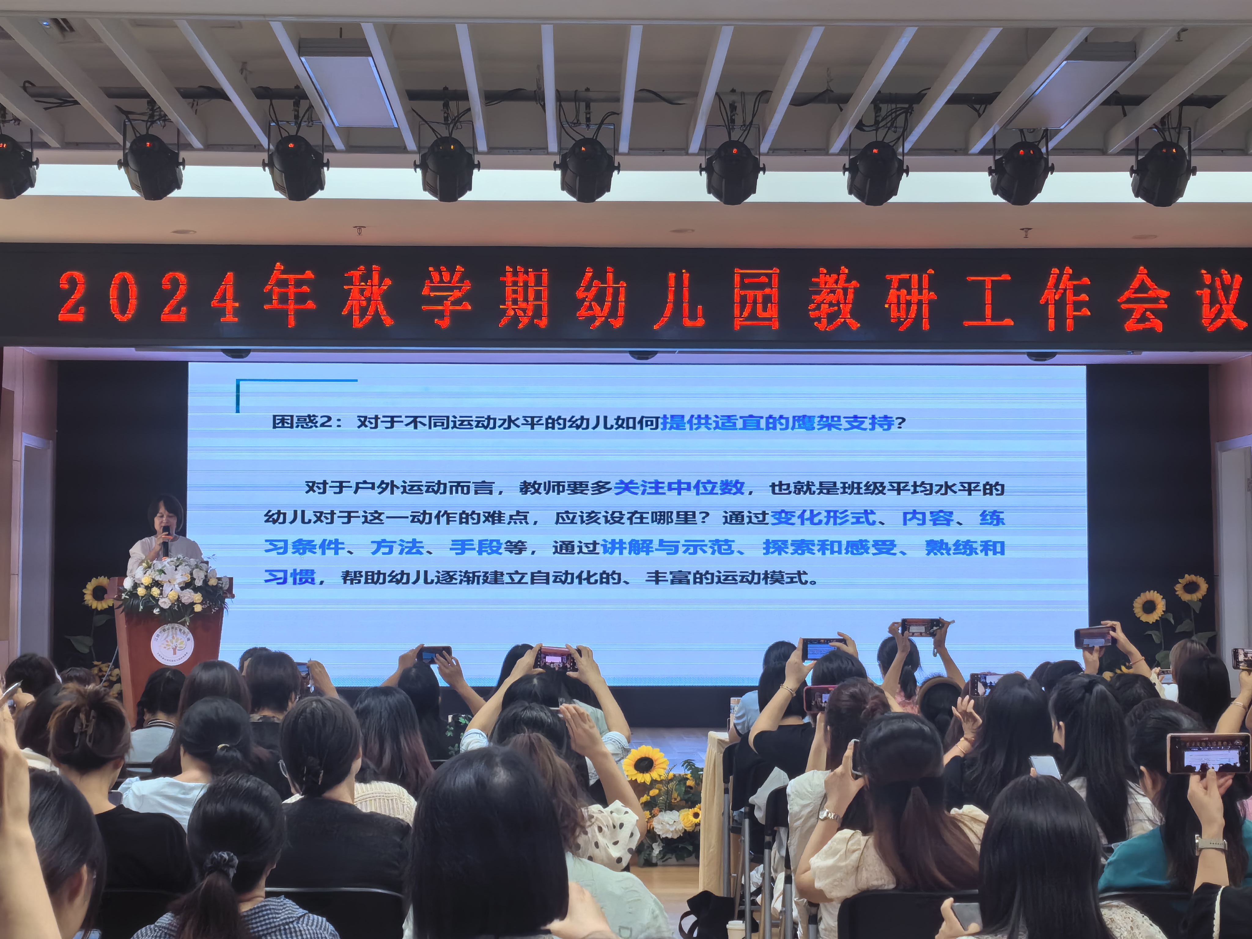 为了落实《评估指南》精神,提升我市业务园长教师队伍的专业素养和管理能力,有效推进园本教研工作的实效性,持续提升园所保教质量,2024年9月29日下午,江阴市秋学期幼儿园教研工作会议及培训在敔山湾实验幼儿园举行,江阴市各公、民办幼儿园业务园长和保教主任前来参加了此次培训会议。