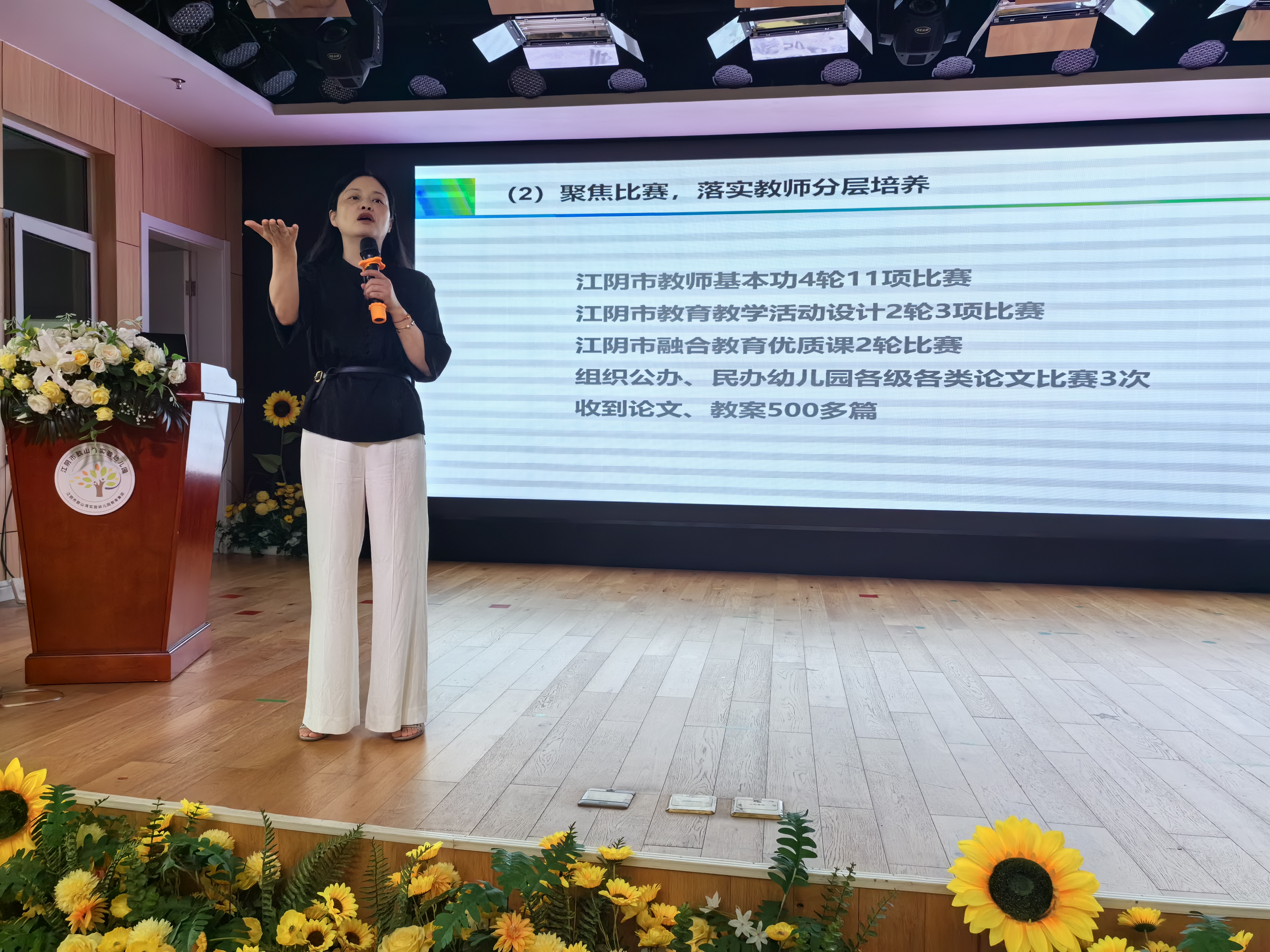 江阴市学前教育研训室张小青主任关于教研室过往的工作回顾拉开了此次活动的序幕。张主任分别从专业展示、专业研究、专业培训、专注调研等方面进行梳理和介绍。