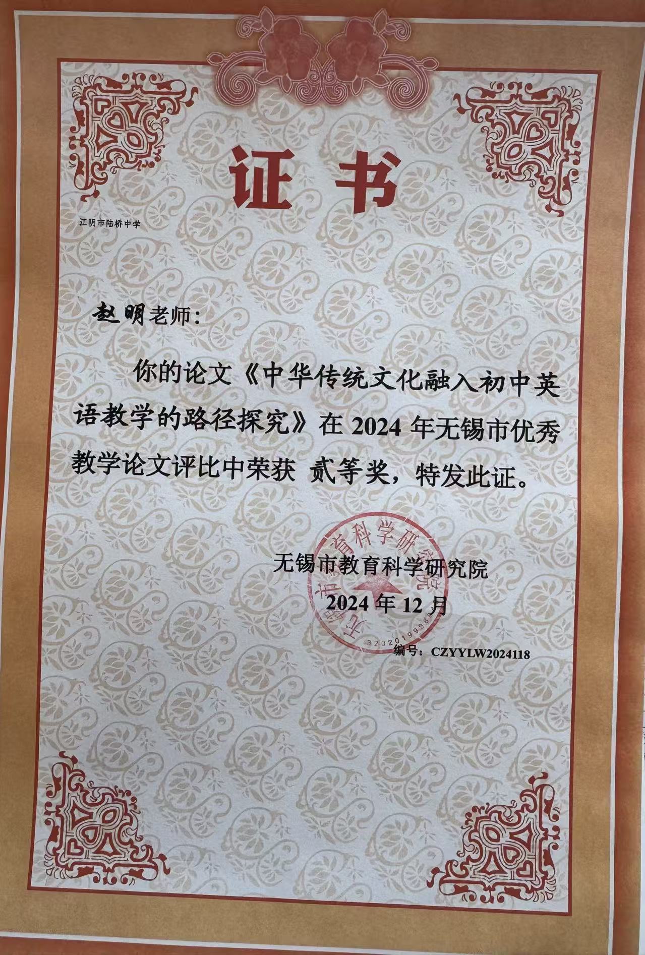 赵明的论文或无锡市优秀论文教学评比二等奖 2025-10-11