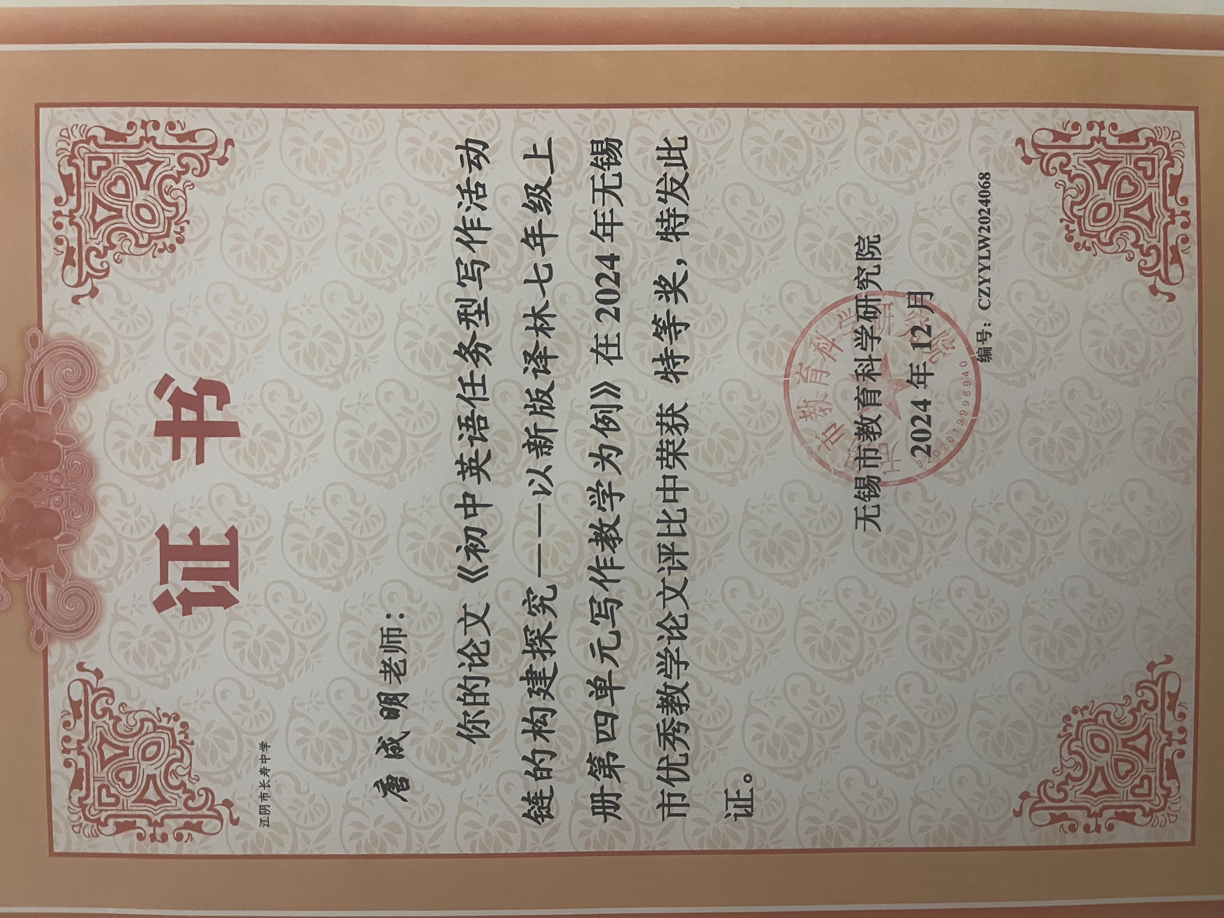 获奖类别:无锡市教科院