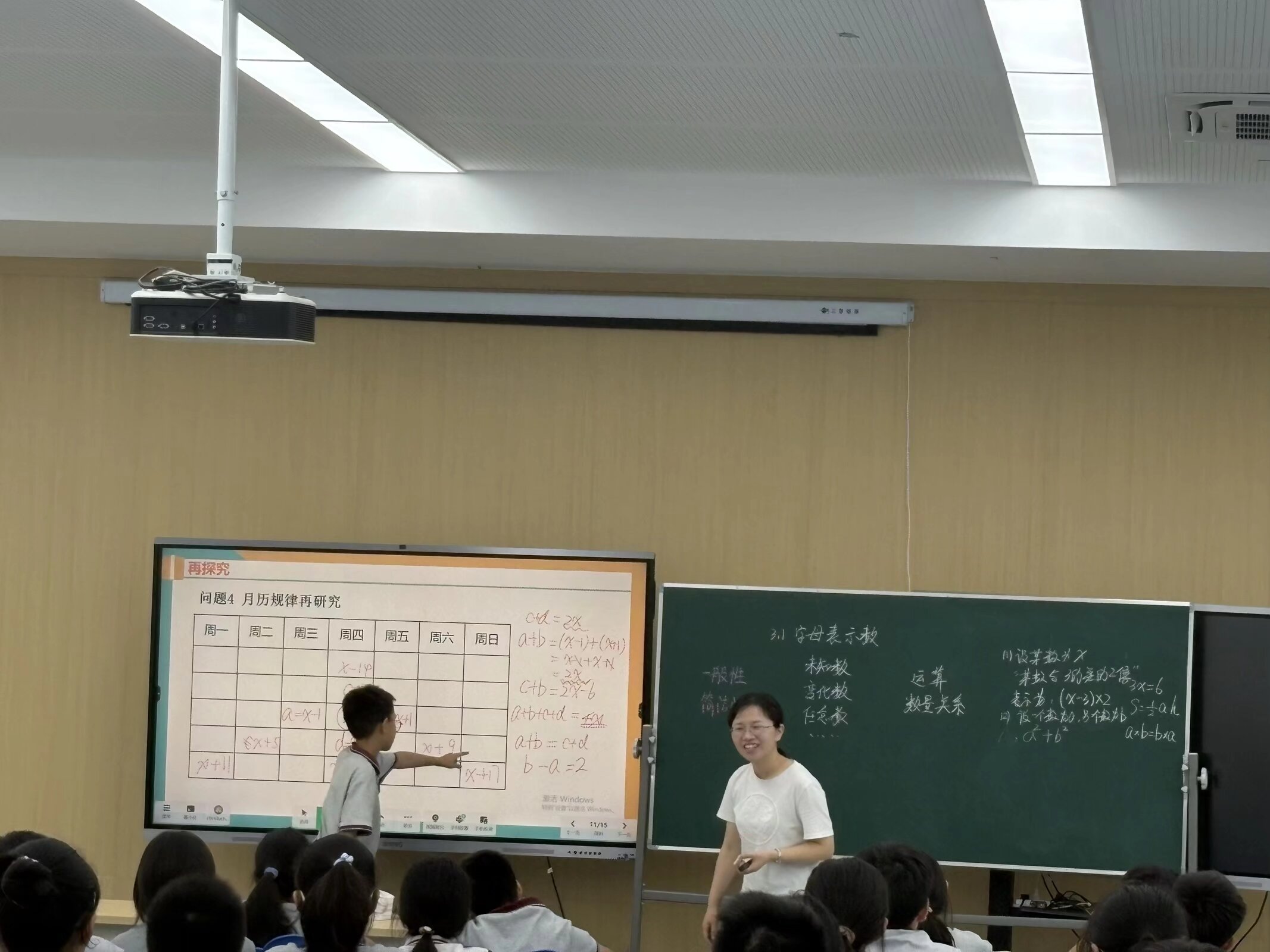 活动伊始,与会教师共同观摩了祁老师和陆老师执教的《字母表示数》一课。祁老师从上一章《有理数》入手,巧妙运用阅历表等贴近学生认知的活动,引导学生在真实情境中体会字母表示数的必要性,使抽象概念的引入自然而生動。陆老师则通过层层递进的教学设计,引导学生从字母表示未知数逐步过渡到表示任意数与数量关系,有效提升了学生的符号意识与概括能力,助力学生实现从算术思维到代数思维的重要跨越。
