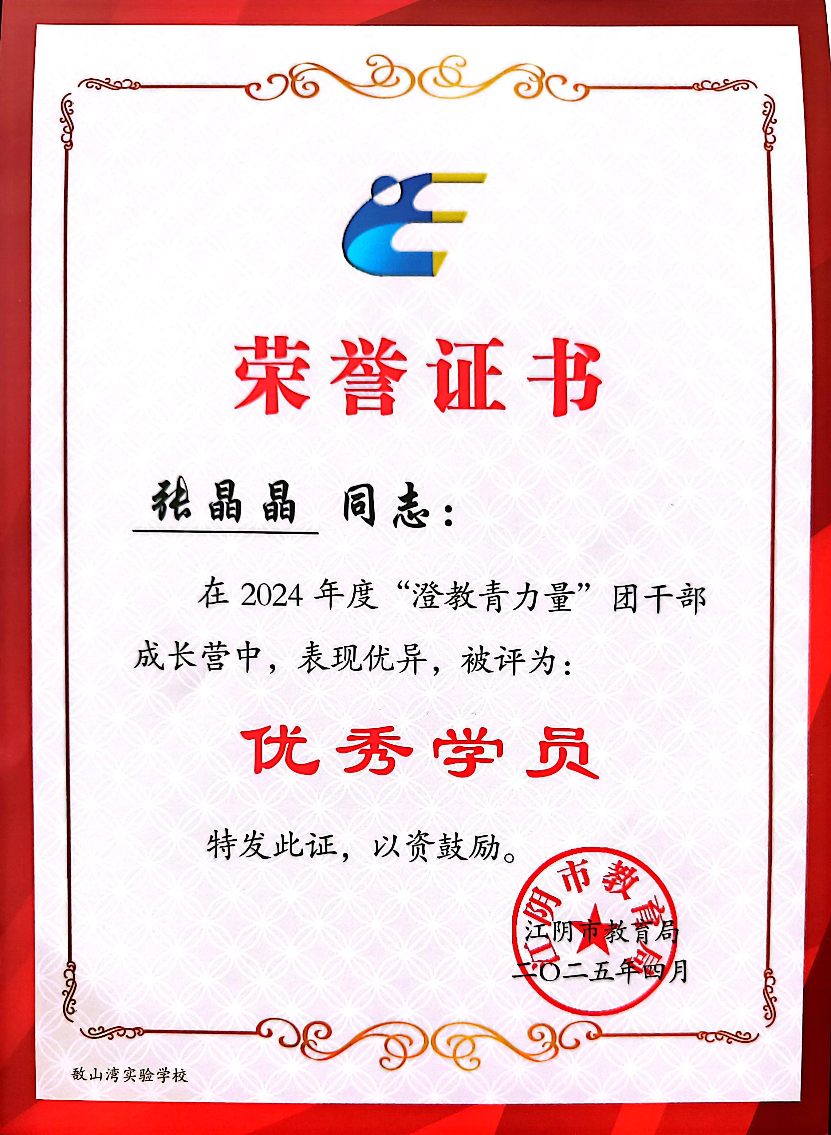 荣誉提升:余家宇名师工作室成员张晶晶获得“澄教青力量”团干部优秀学员
