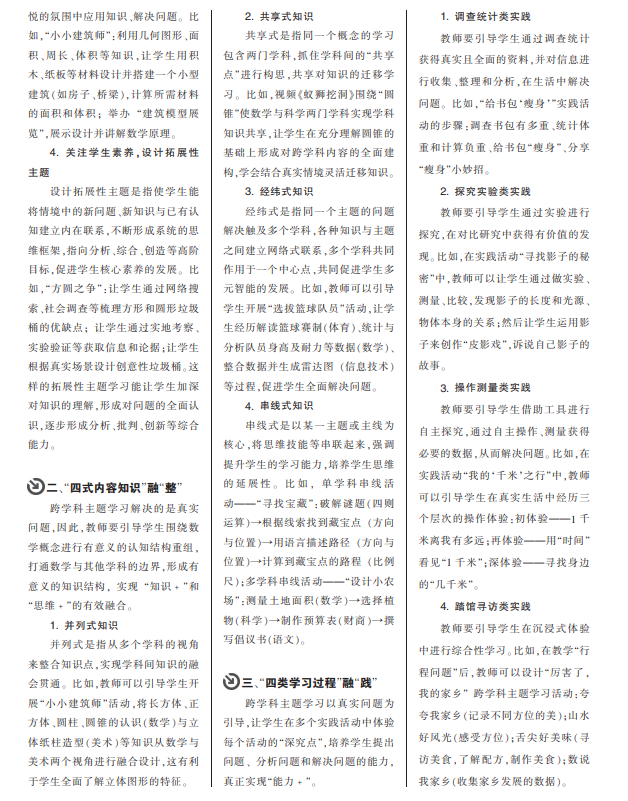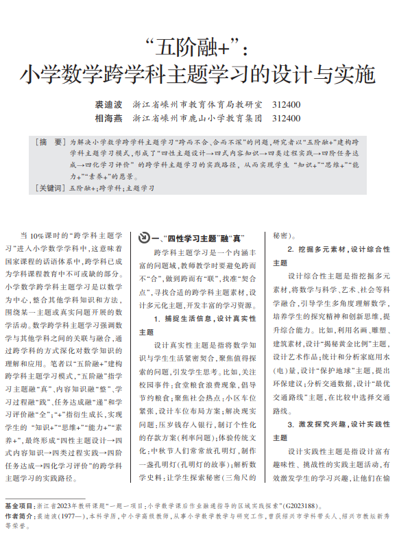文章推荐:“五阶融+”: 小学数学跨学科主题学习的设计与实施(裘迪波 相海燕发表于《数学教学通讯》2025.8)