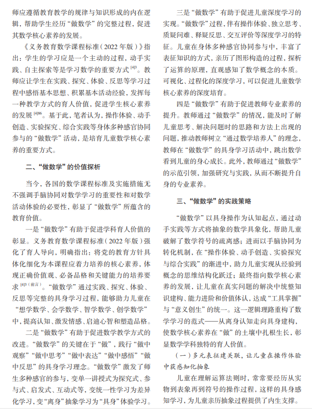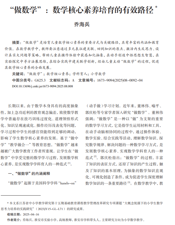 文章推荐《“做数学”:数学核心素养培育的有效路径》(乔海兵发表于《江苏教育研究》202508)