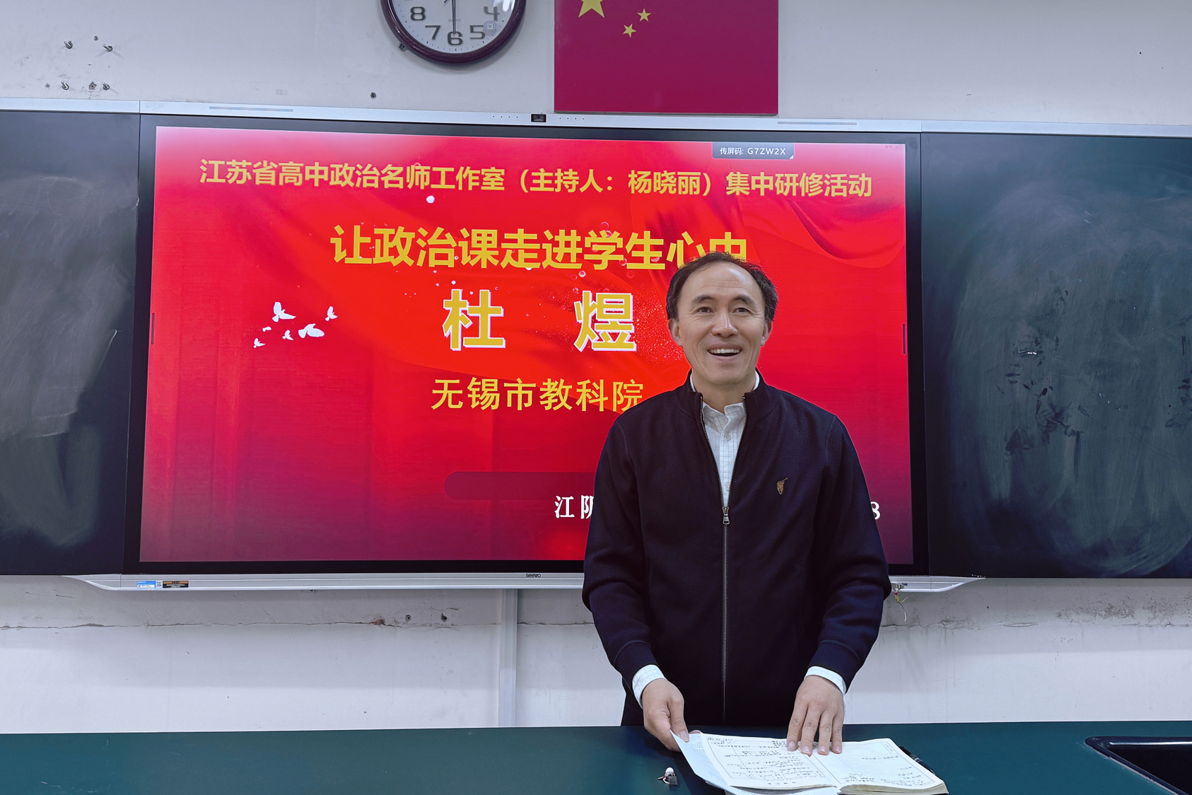 无锡市教科院杜煜老师为我们带来了专题讲座《让思政课走进学生心里》。杜老师以习近平总书记提出的思政课改革创新“八个统一”为根本遵循,与工作室全体教师共同展开深度研讨,探索让思政课真正走进学生内心、融于学生思维的具体路径。