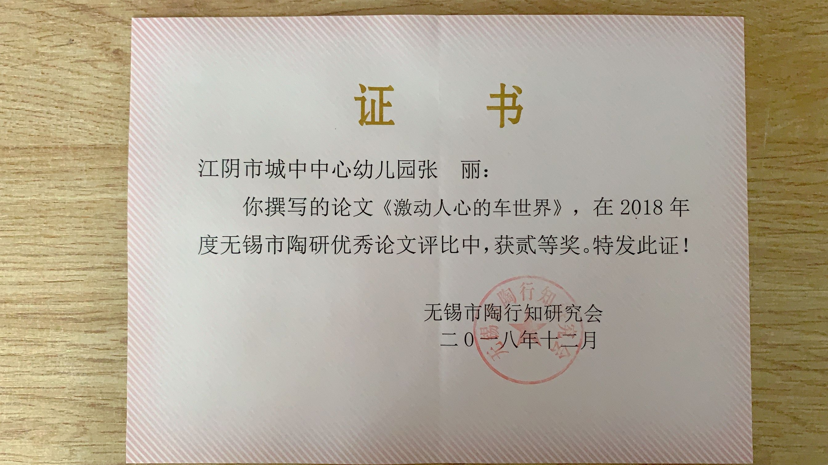 张丽老师的论文《激动人心的车世界》获无锡市陶研论文二等奖