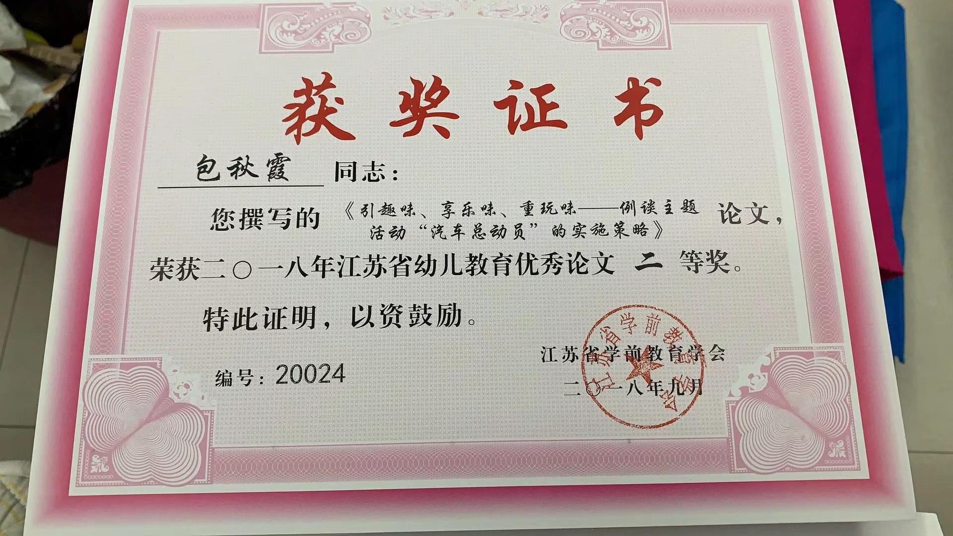 包秋霞老师论文《引趣味、享乐味、重玩味》获江苏省优秀论文二等奖