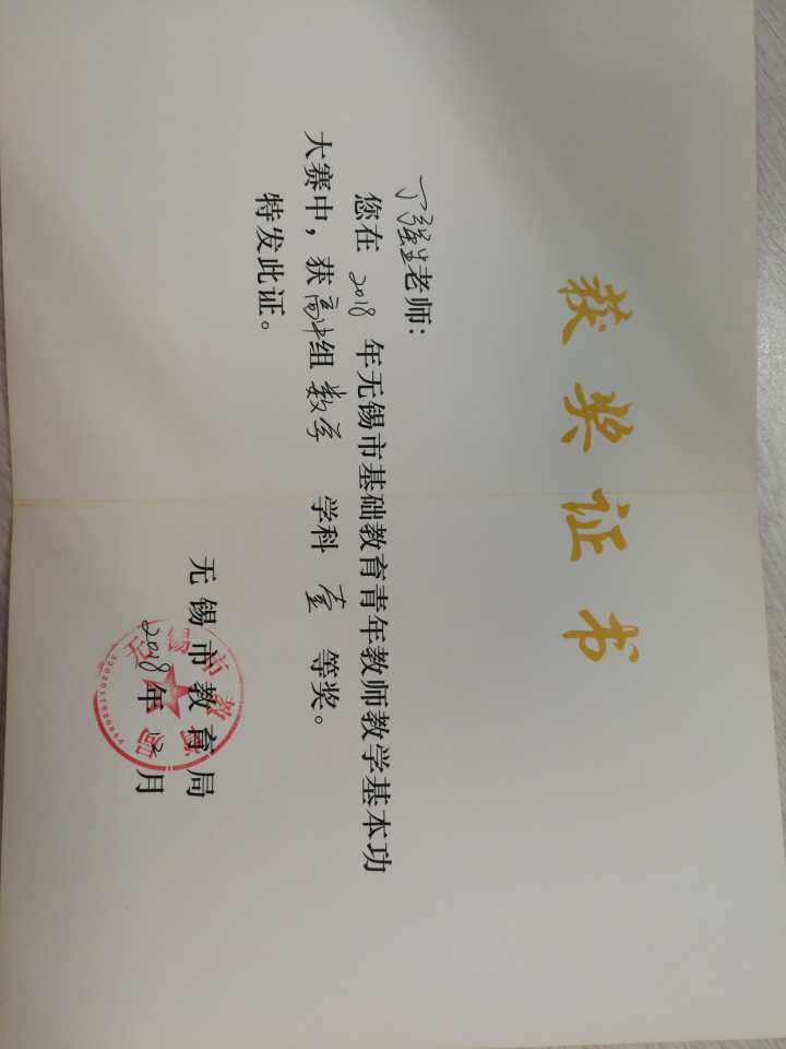 无锡市基本功大赛二等奖