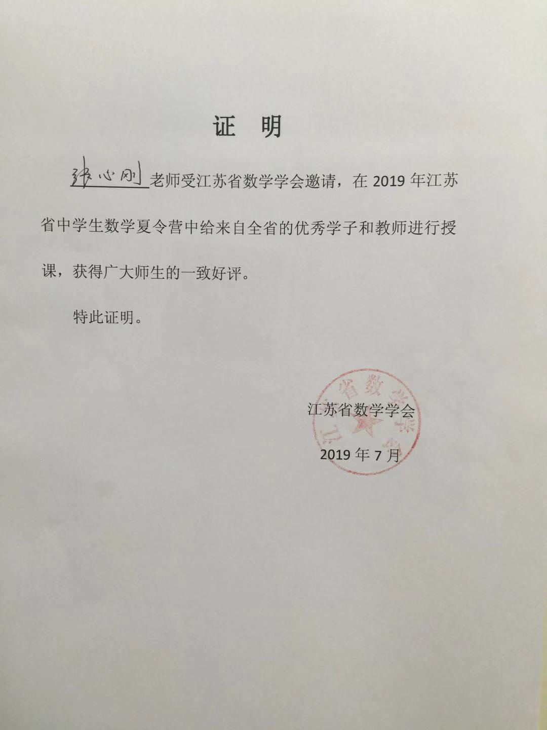 2019江苏省数学夏令营专家讲座