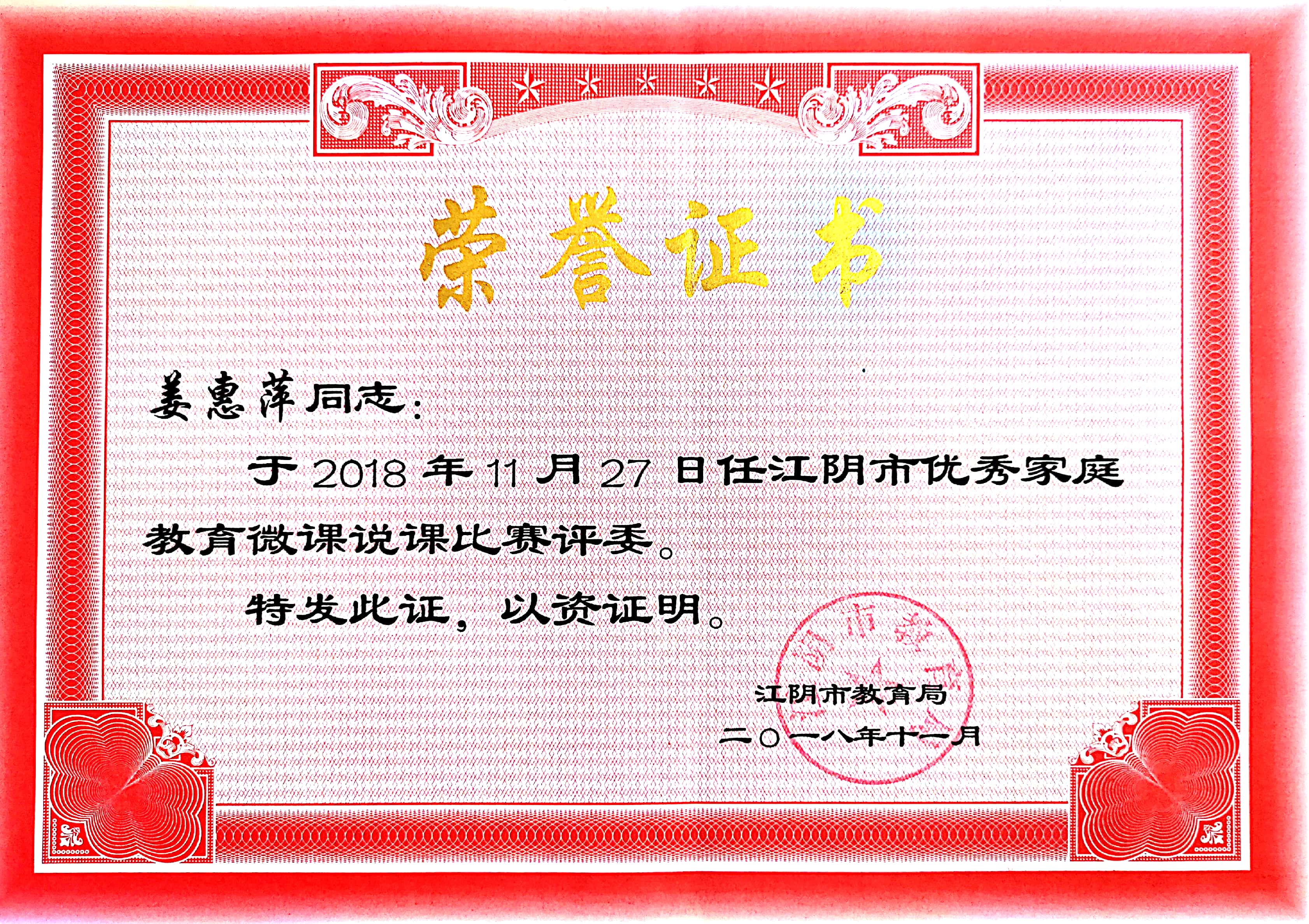 姜惠萍担任“江阴市优秀家庭教育为例说课”比赛评委