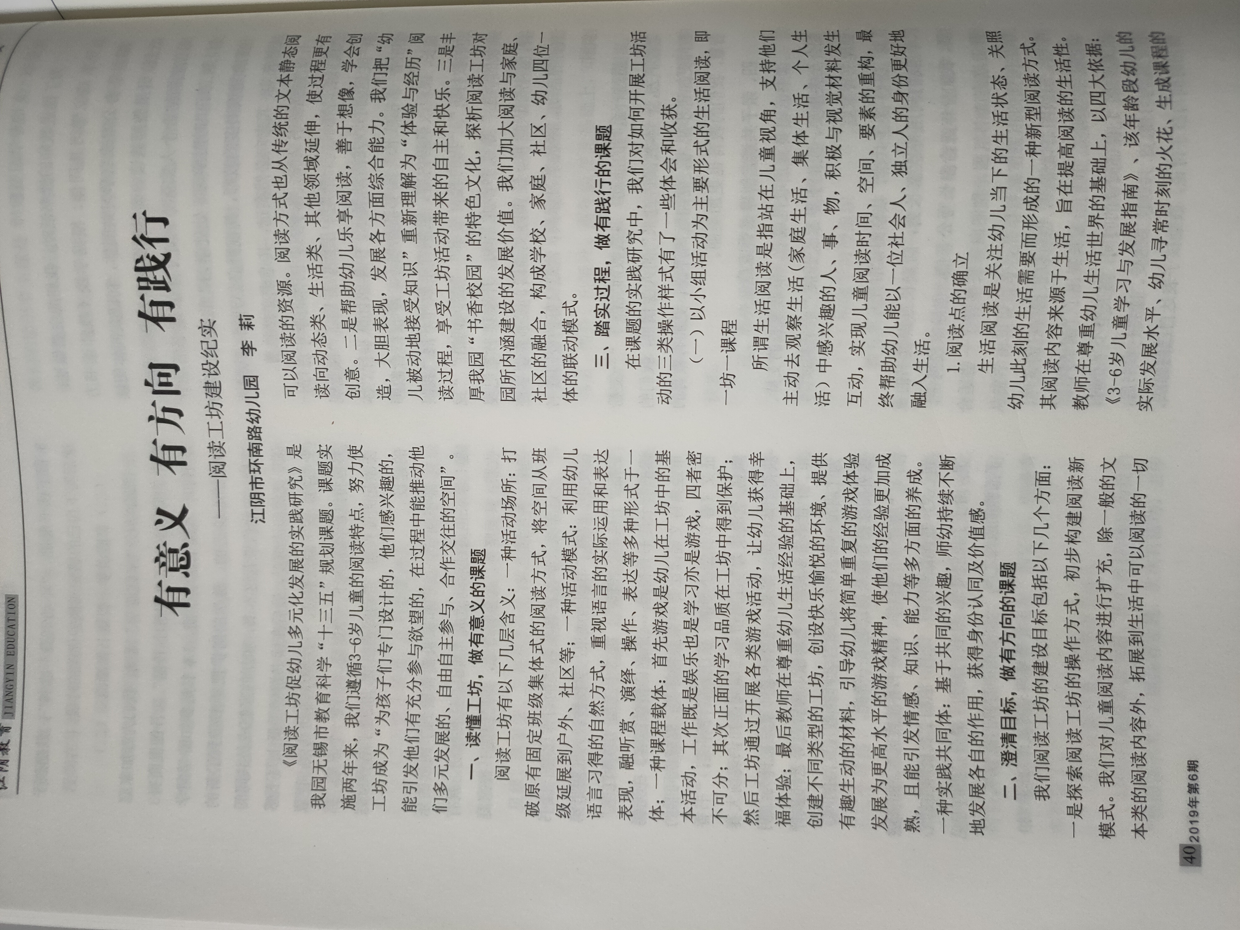 李莉老师论文《阅读工坊纪实》发表于《江阴教育》2019年6月刊
