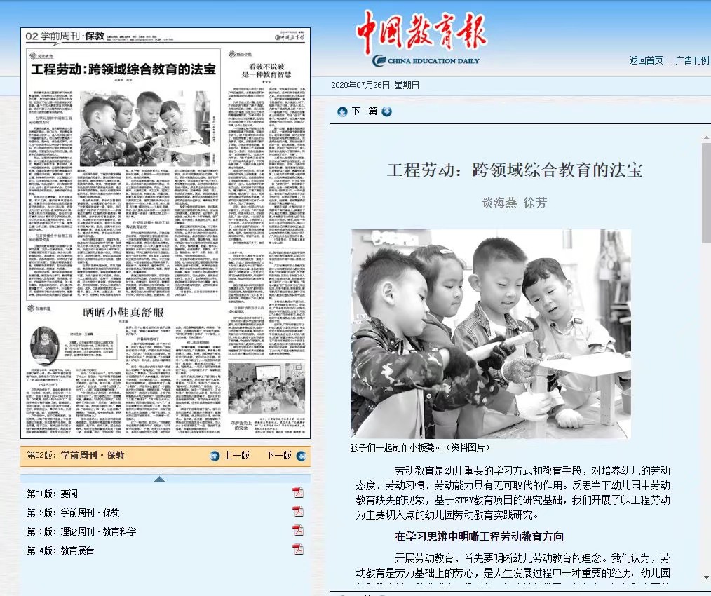 谈海燕老师论文《工程劳动:跨领域综合教育的法宝》发表在中国教育报