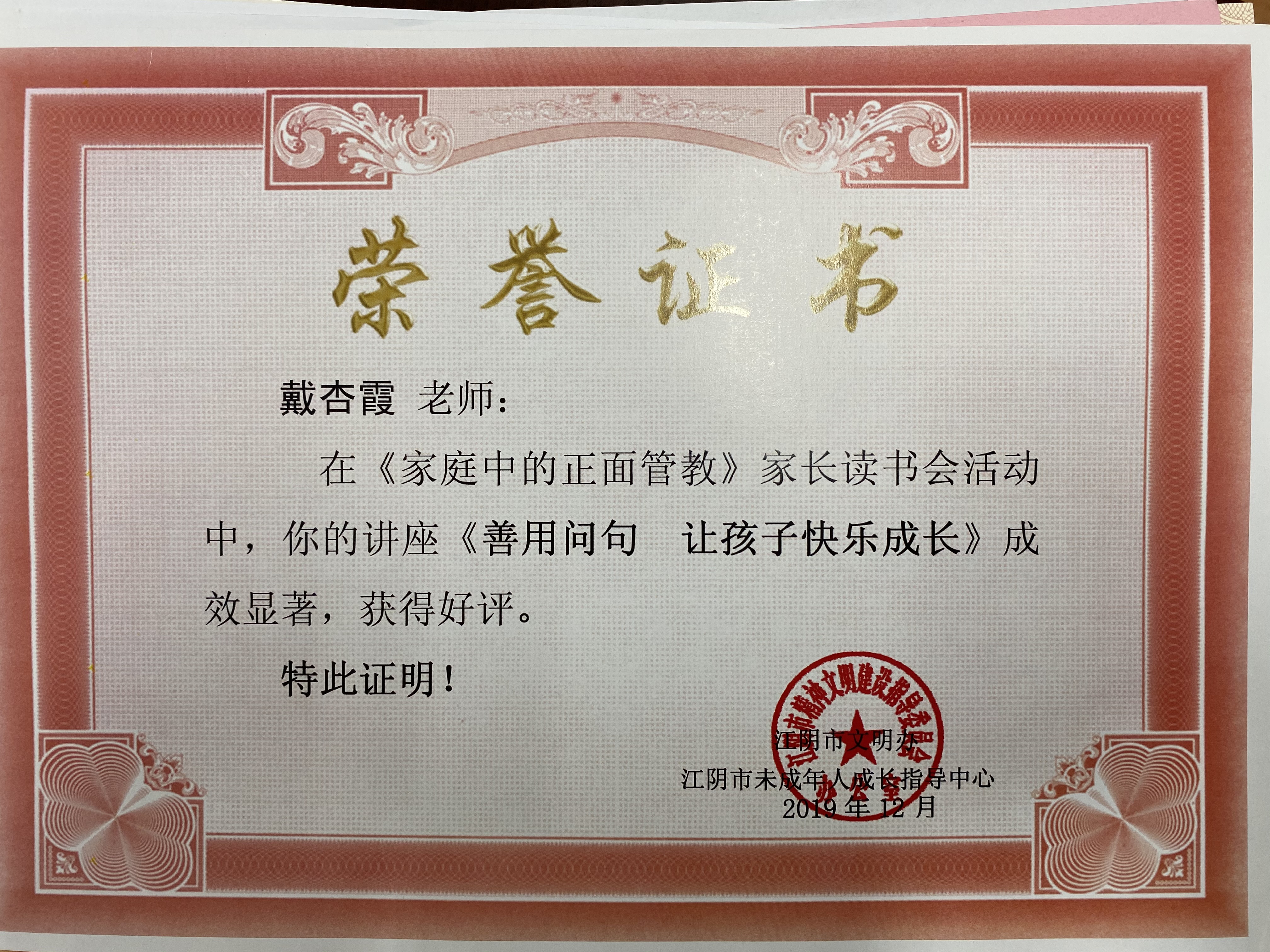 戴杏霞老师在江阴市未成年人指导中心公开讲座《善用问句 让孩子快乐成长》