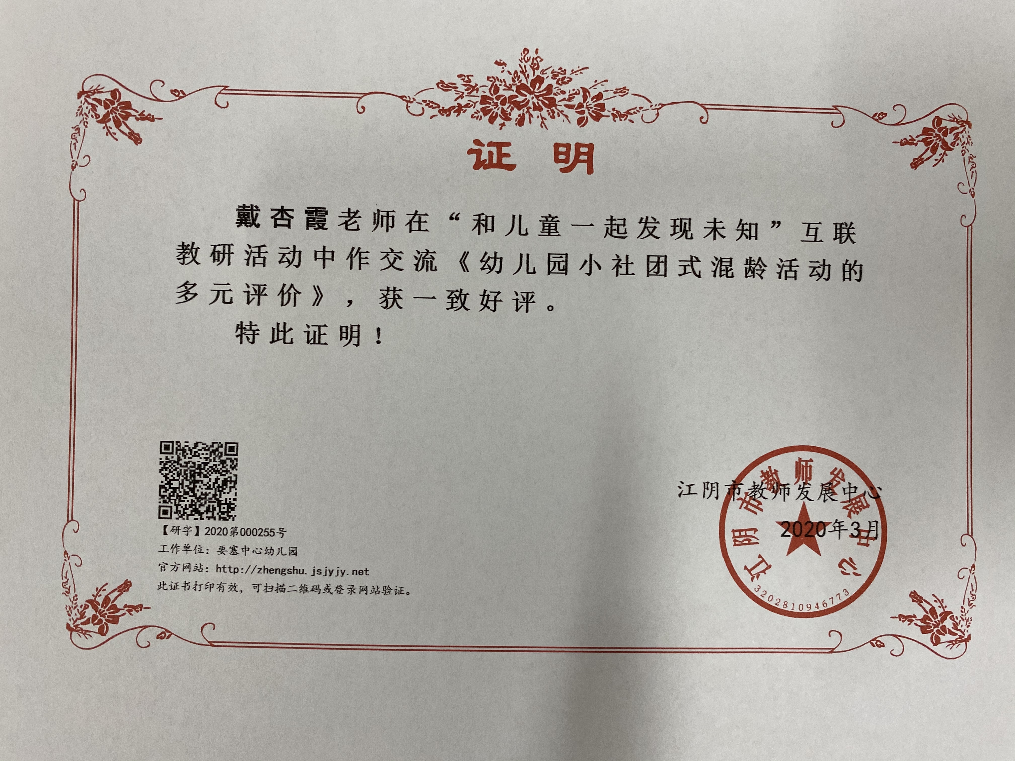 戴杏霞老师在“和儿童一起发现未知”互联教研活动中做交流《幼儿园小社团式混龄活动的多元评价》