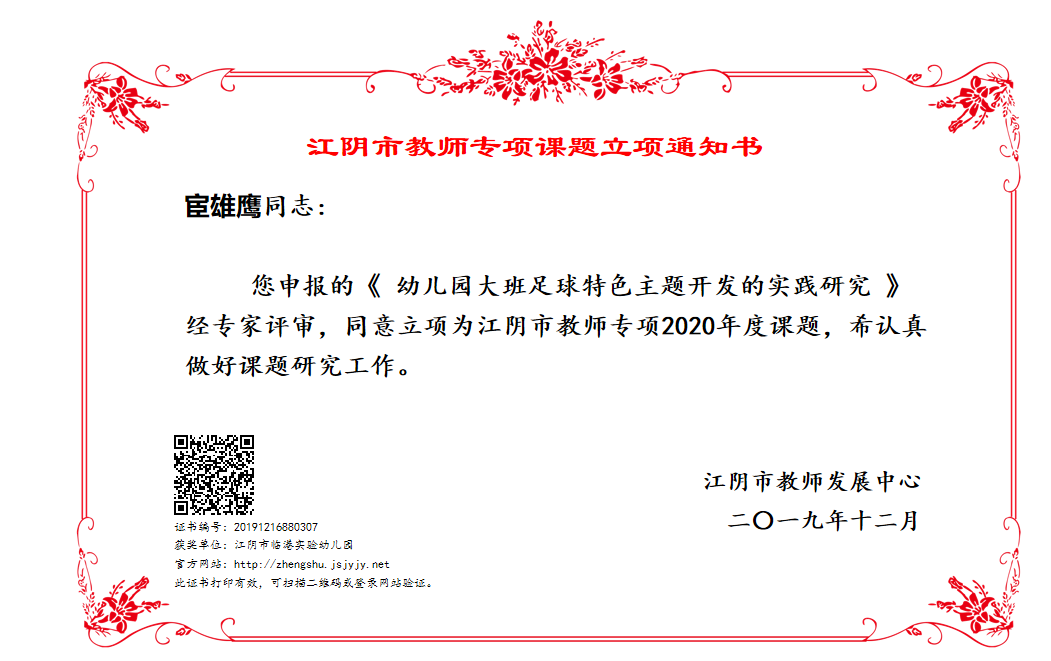 宦雄鹰江阴市教师个人专项课题立项