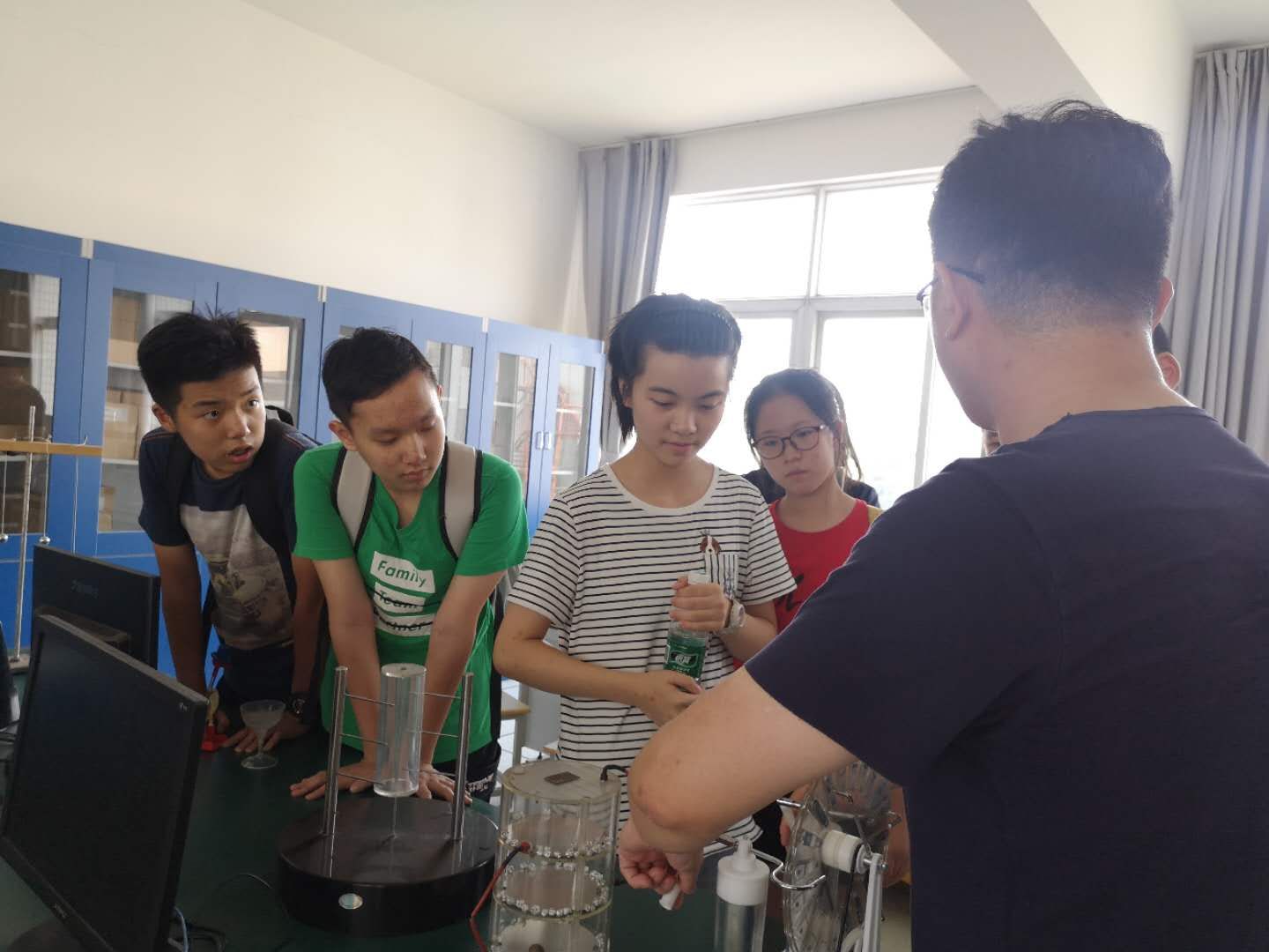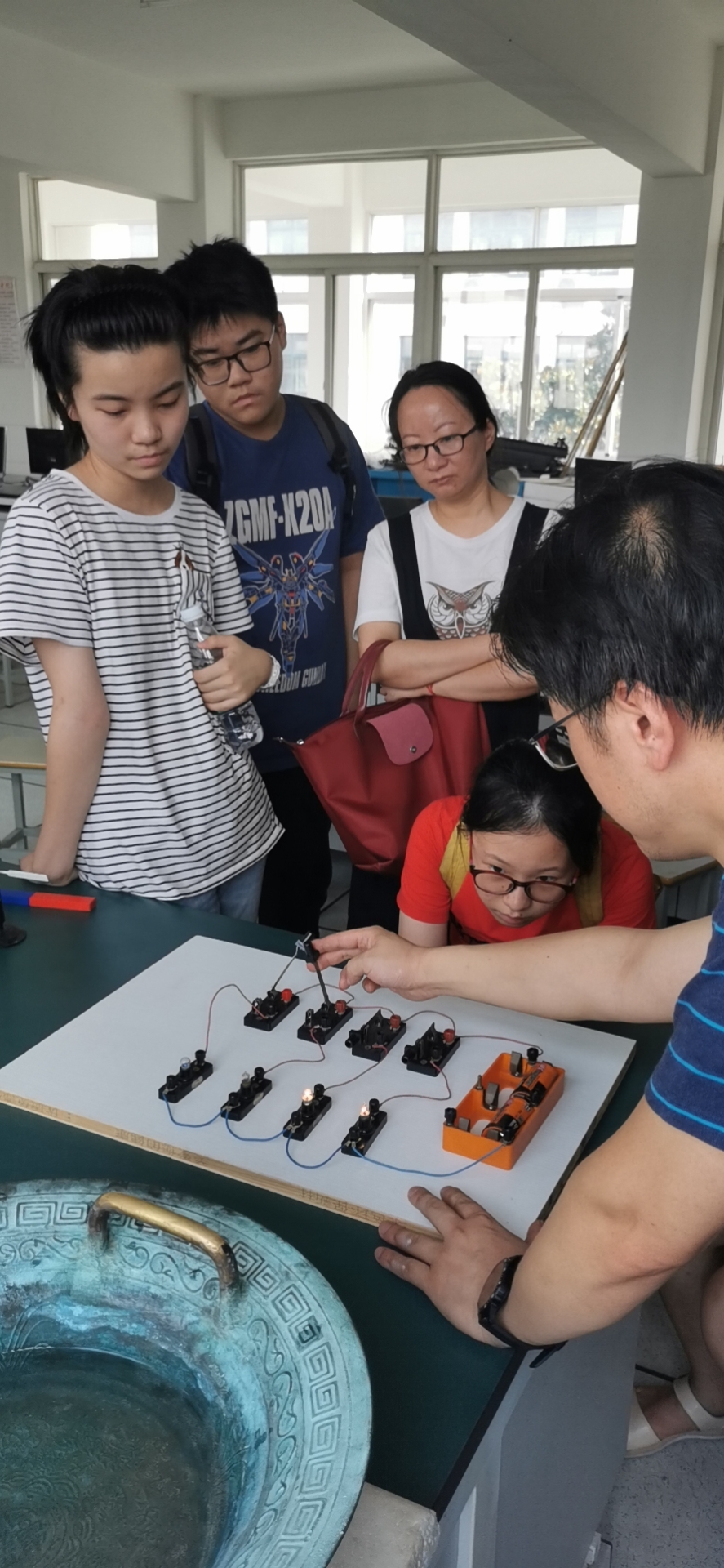 2020年暑假,工作室老师们做公益活动——让孩子们走进实验室,给孩子们讲解物理实验现象。
