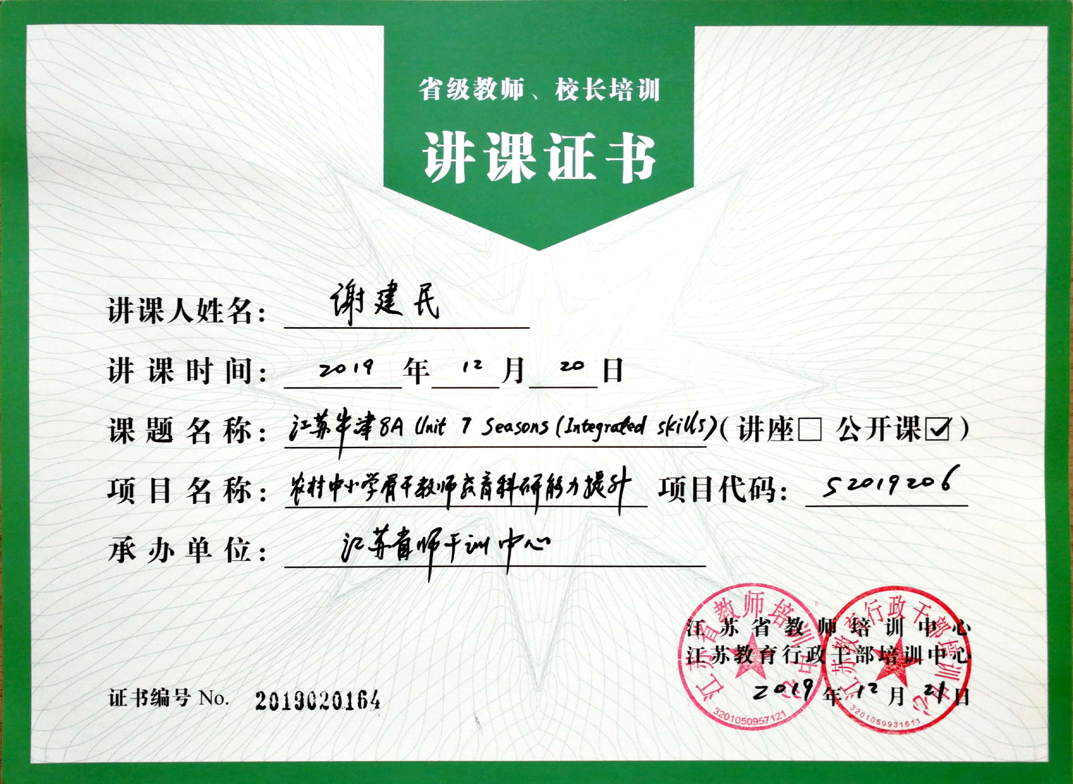 谢建民老师在2019江苏省“名师送培”农村中小学骨干教师教育科研能力提升培训中上公开展示课 2020-10-12