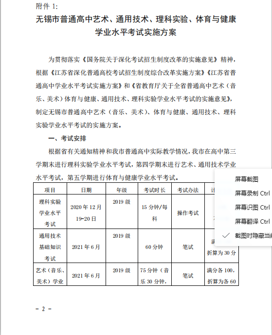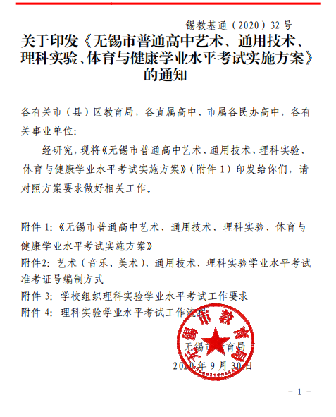 关于印发《无锡市普通高中艺术、通用技术、理科实验学业水平考试实施方案》的通知