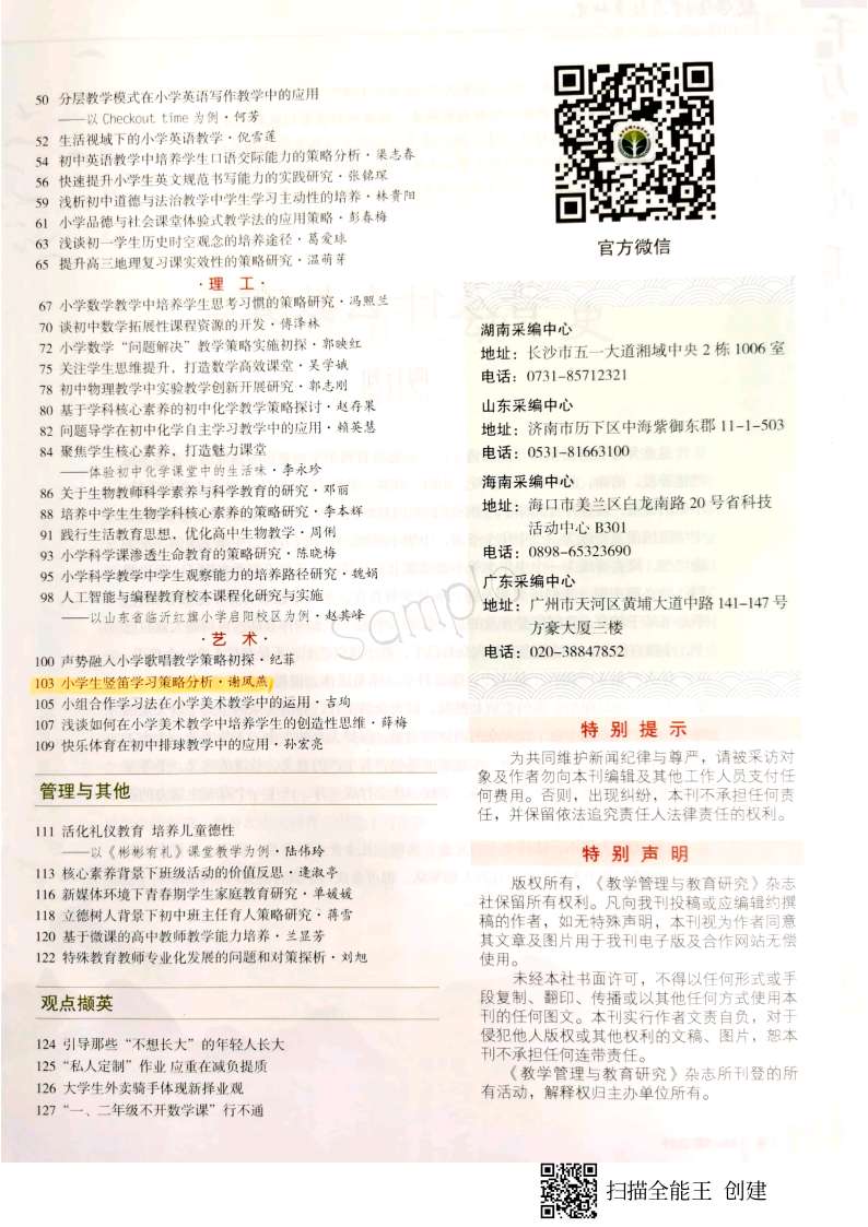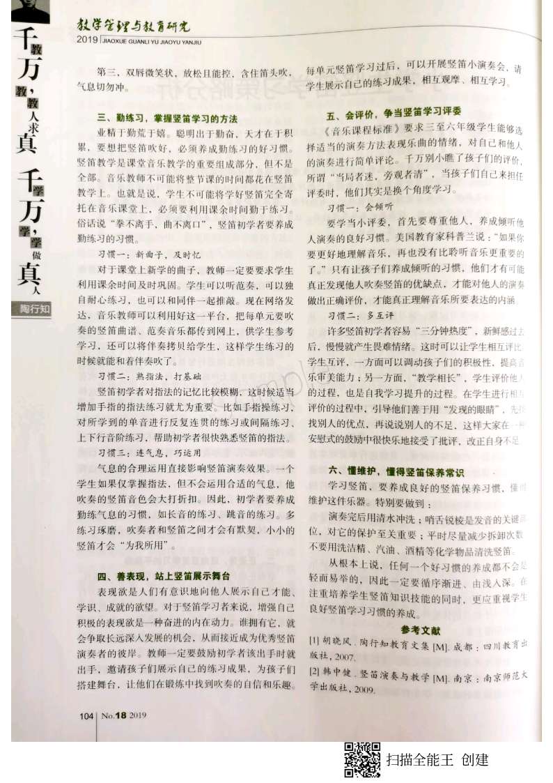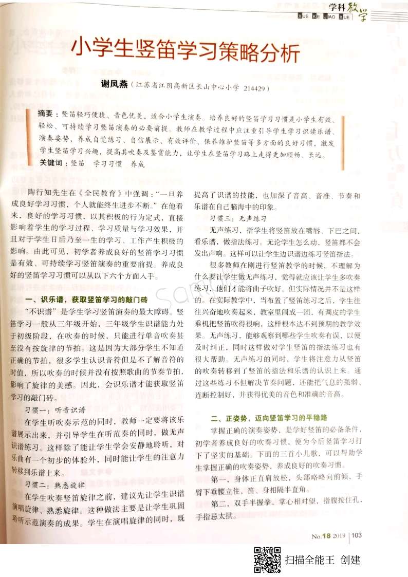 谢凤燕《小学生竖笛学习策略分析》在2019年18期《教学管理与教育研究》期刊发表
