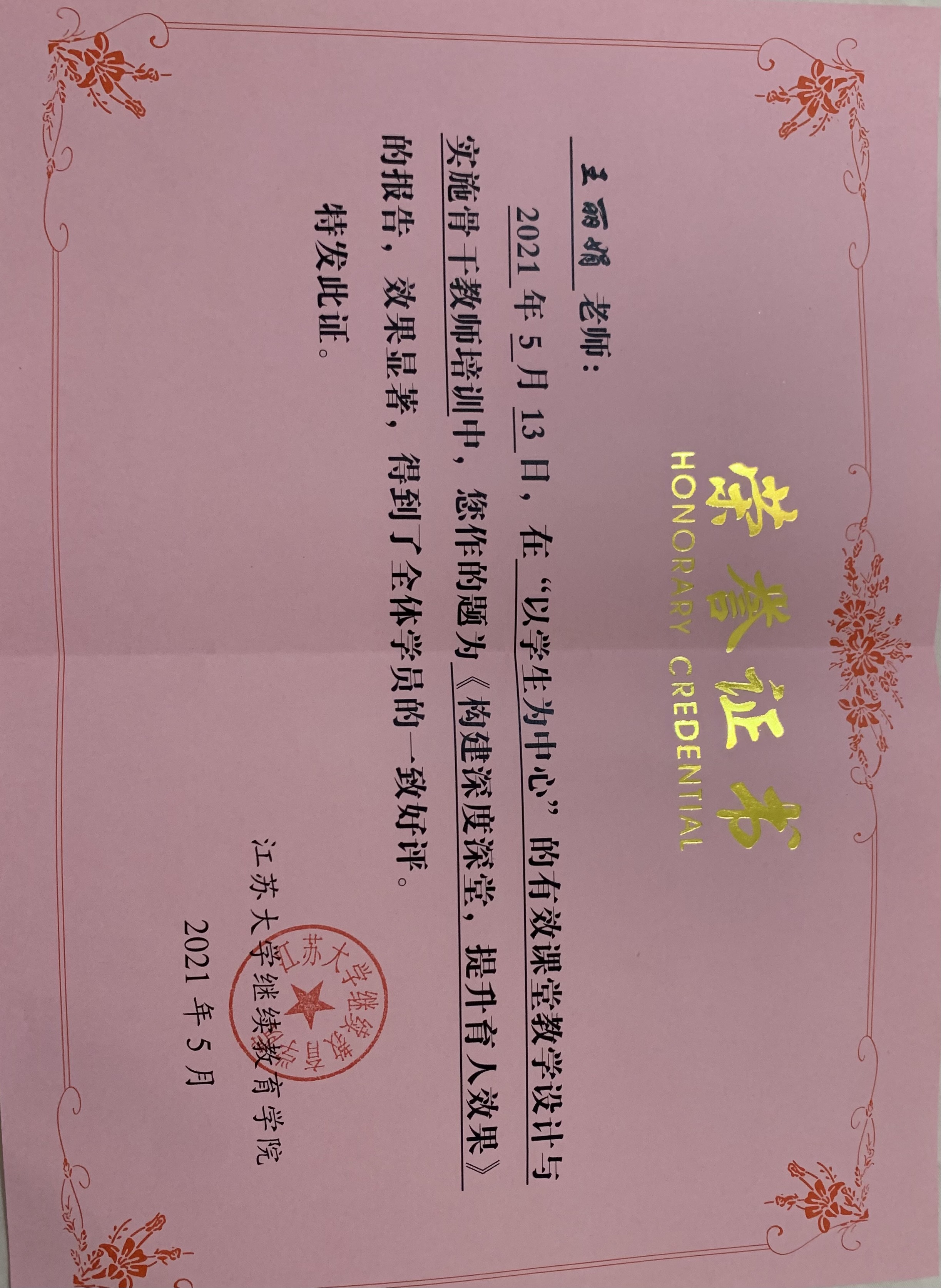 2021.5.13 工作室导师王丽娟应邀赴江苏大学为骨干教师培训开设讲座。