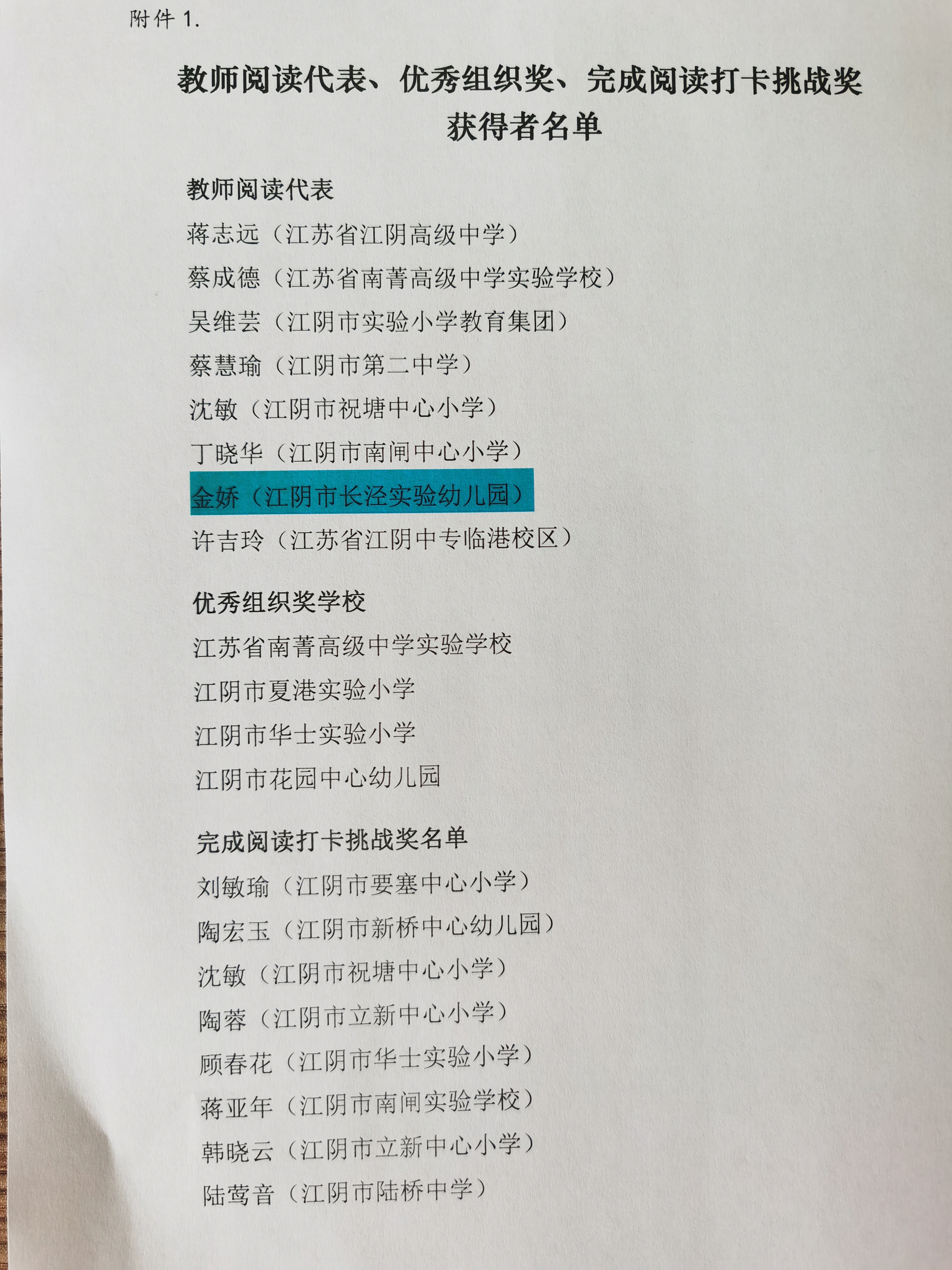 评比部门:华东师范大学出版社、江阴市教育局