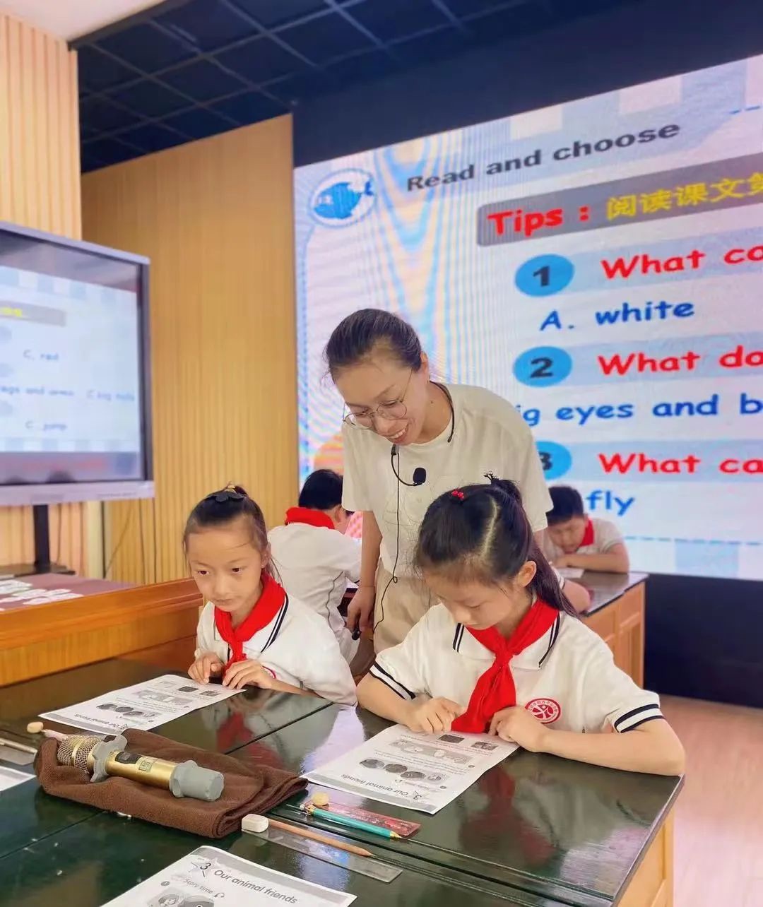 桐岐中心小学的严海莲教导执教了五上Unit3 Our animal friends第一课时。严老师教态亲切,徐徐道来,给学生创造了轻松的课堂氛围。整节课,学生做到了愉悦学习,大胆表达,学习效果良好。严老师以Look and say & watch and match整体感知文本,以listen and fill细化文本,再以how to introduce animals & write about my animal friends升华文本。既能突出重点——书中人物的动物朋友的特征,又能——突破难点,学生在逐层递进的学习活动中,自然而然地掌握了应如何介绍自己动物朋友。整节课以思维导图的形式串联,培养了学生的高阶思维的同时,更展示出了严老师的深厚教学功底。