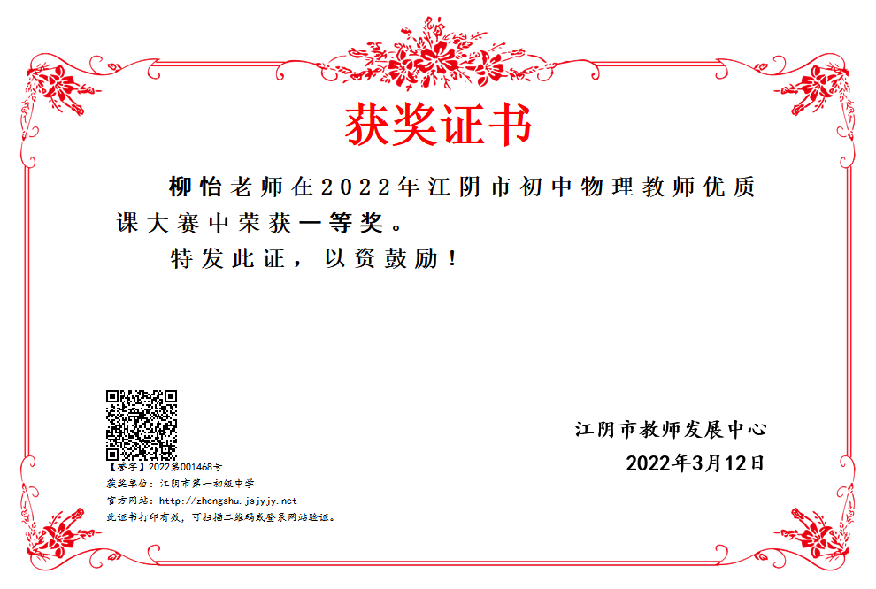 学员柳怡老师获江苏省优质课大赛一等奖第一名