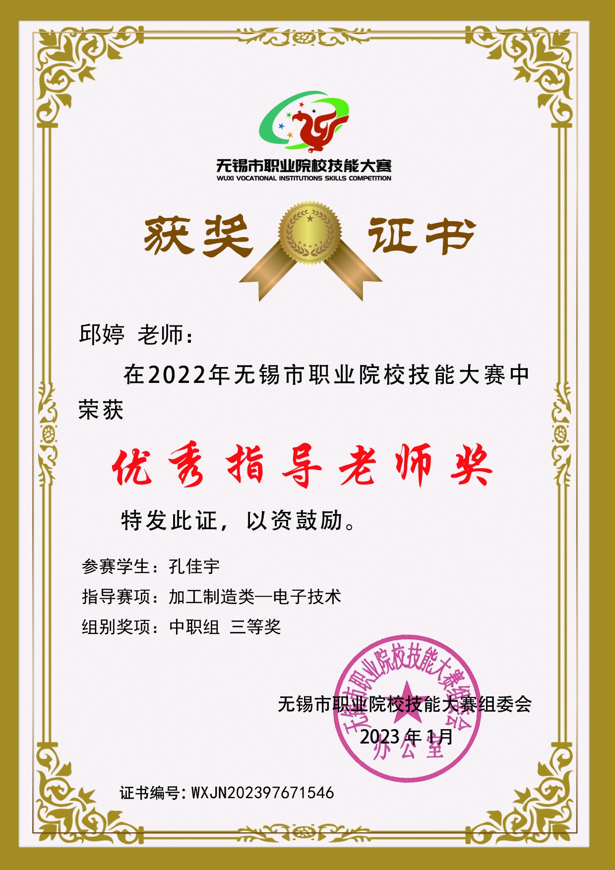 邱婷老师指导学生获2022无锡市“中国银行杯”技能大赛学生组三等奖