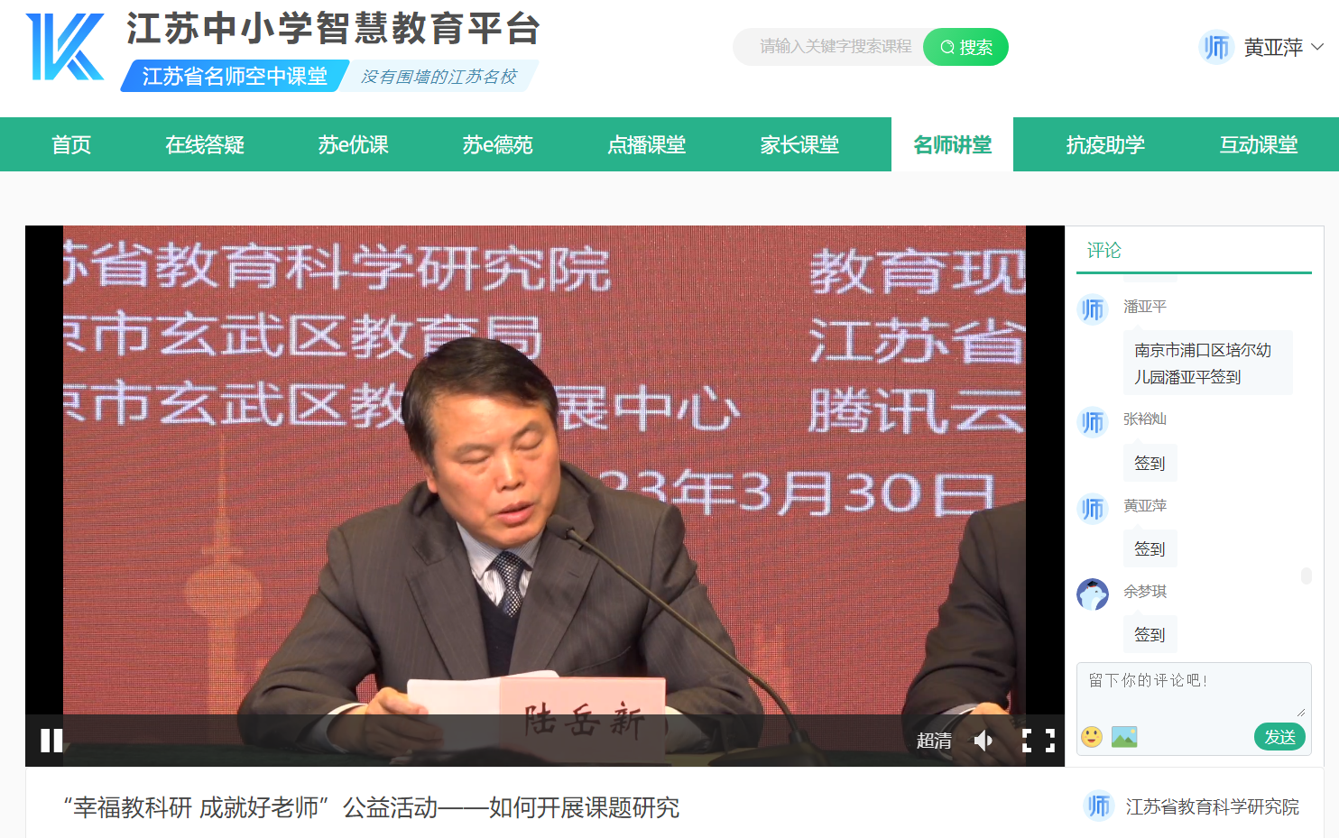 黄亚萍技能名师工坊组织全体成员参与江苏省教科院举办的“幸福教科研,成就好老师”线上公益培训活动,鼓励大家积极参与教科研相关学习,