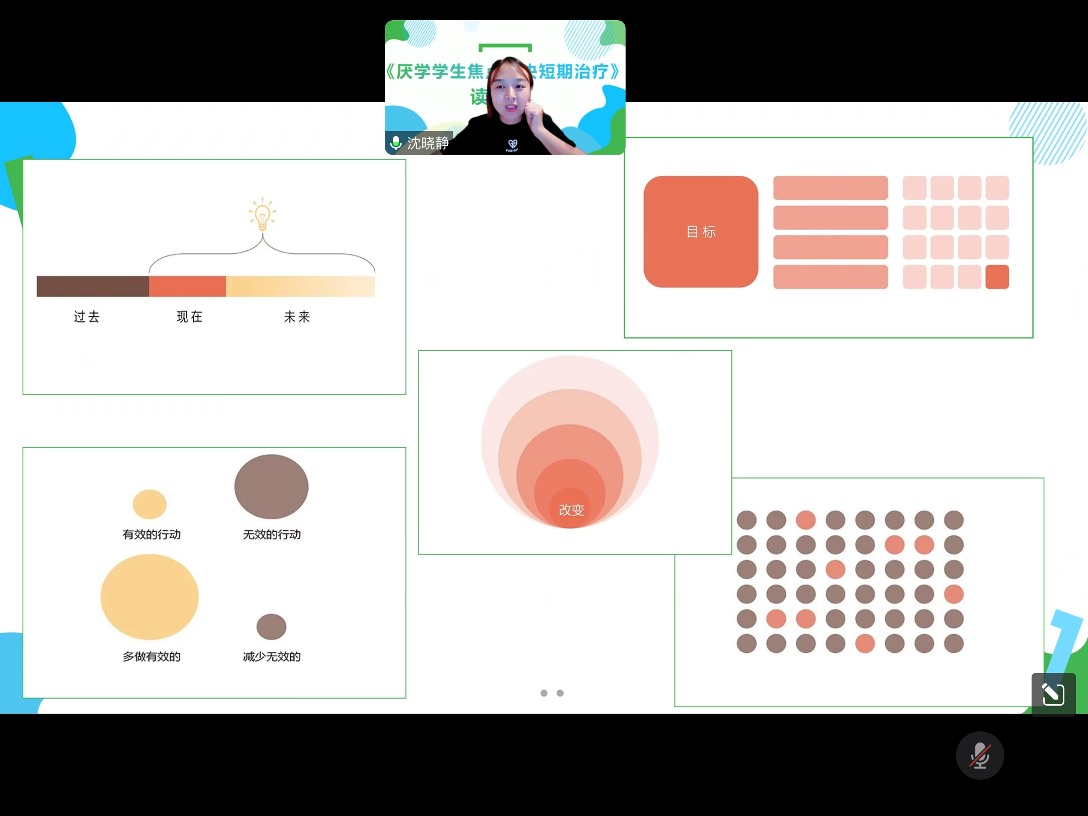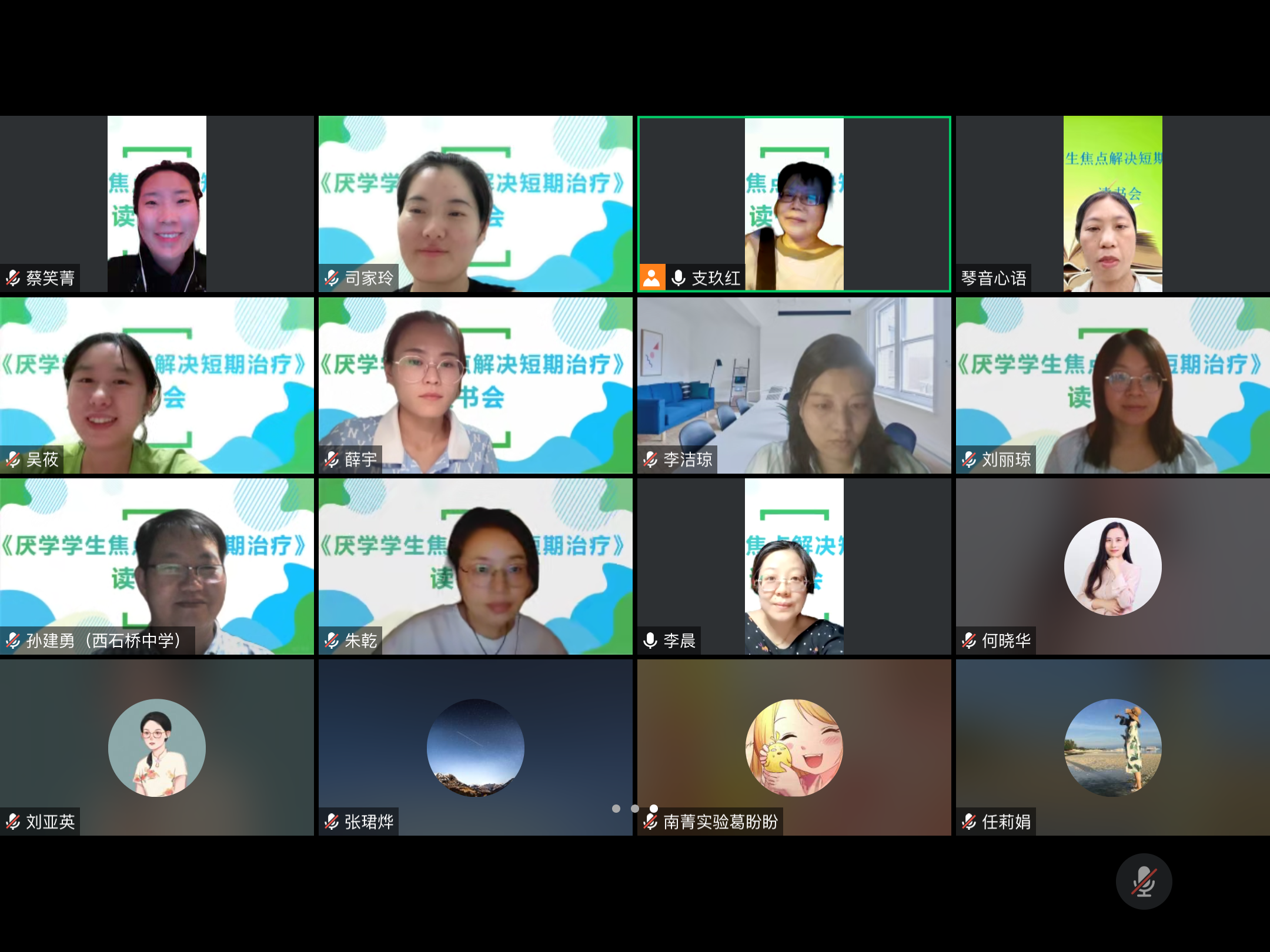 研讨促发展,读书凝素养,在8月25日,江阴市支玖红心理名师工作室开展了《厌学学生焦点解决短期治疗——预防辍学及助力学生成功之道》这本书的线上读书交流会,由江阴市支玖红心理名师工作室成员沈晓静带领我们一起解读与探讨本书的第三章节内容。