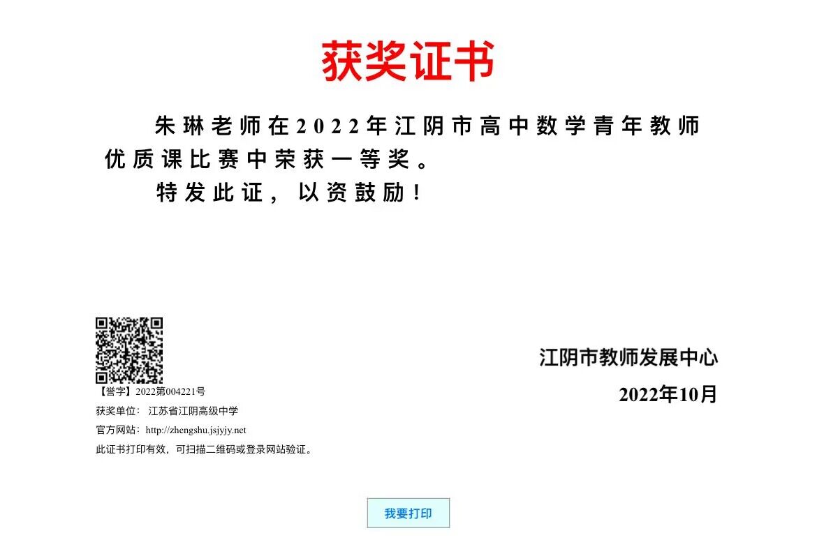 网站类目:学科比赛情况 姓名:朱琳 所在单位:江苏省江阴高级中学 获奖类别: 获奖级别:县级 获奖等级: 获奖时间:2023-10-02 评比部门: 发表刊物: 刊物级别:市级 发表时间:2023-10-02