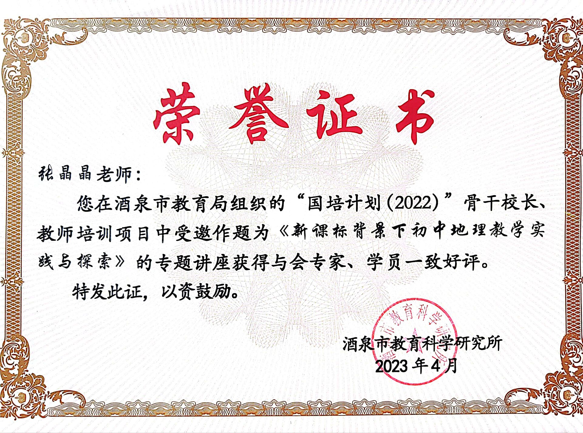 张晶晶老师为酒泉市教育局“国培计划”骨干校长老师作讲座 2023-10-06