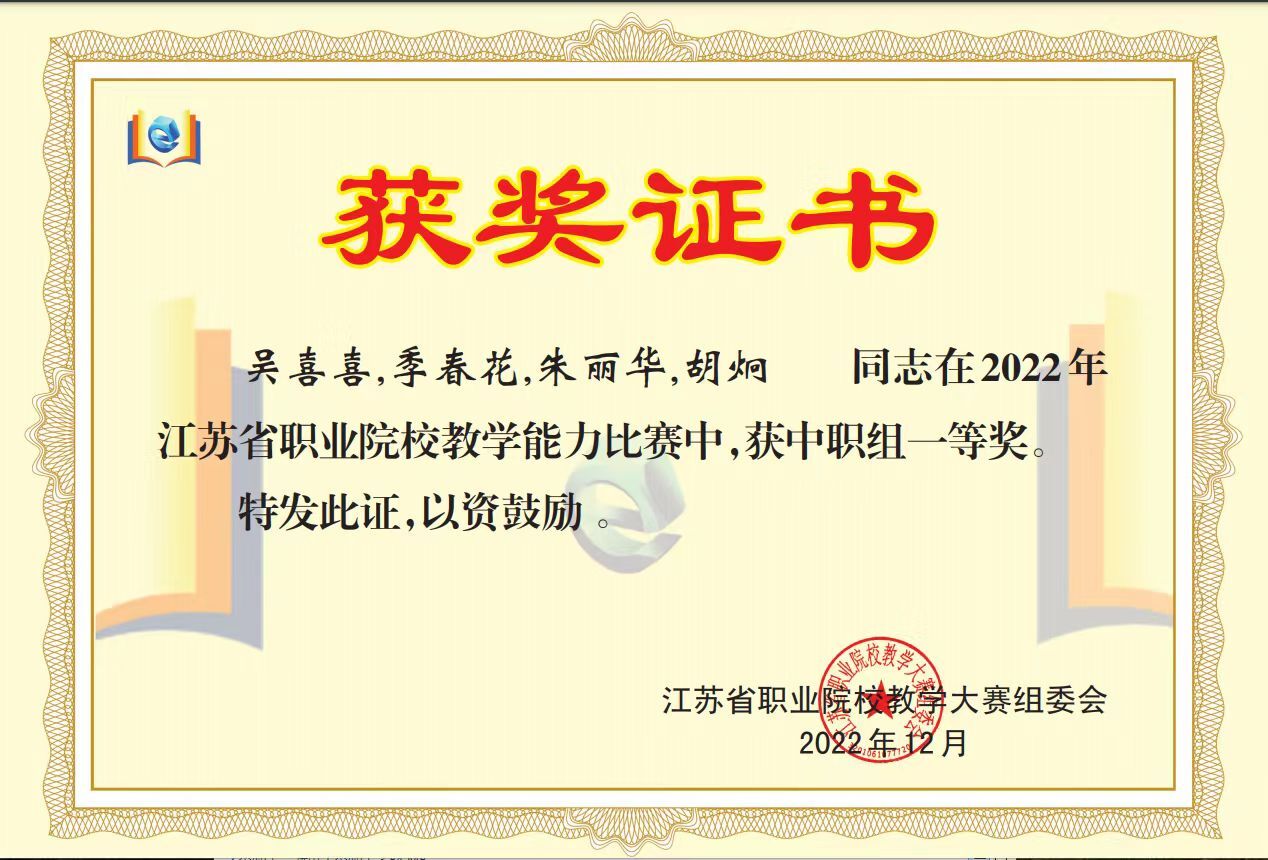 工作室成员组队参加江苏省职业学校教学大赛获一等奖