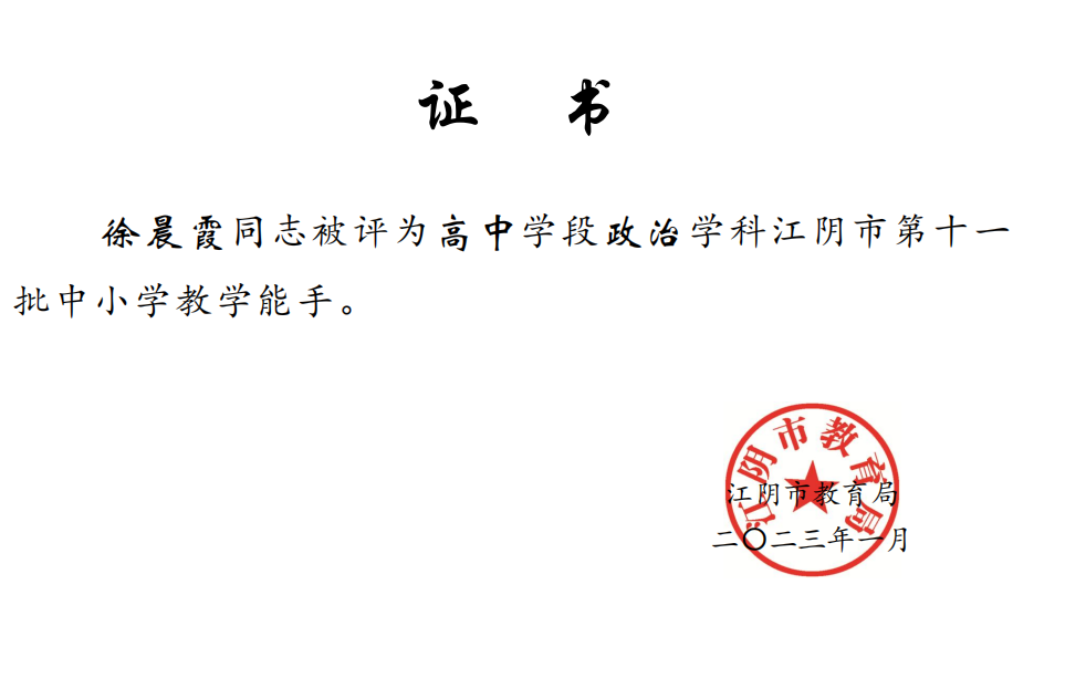 杨晓丽高中政治名师工作室成员徐晨霞荣誉提升