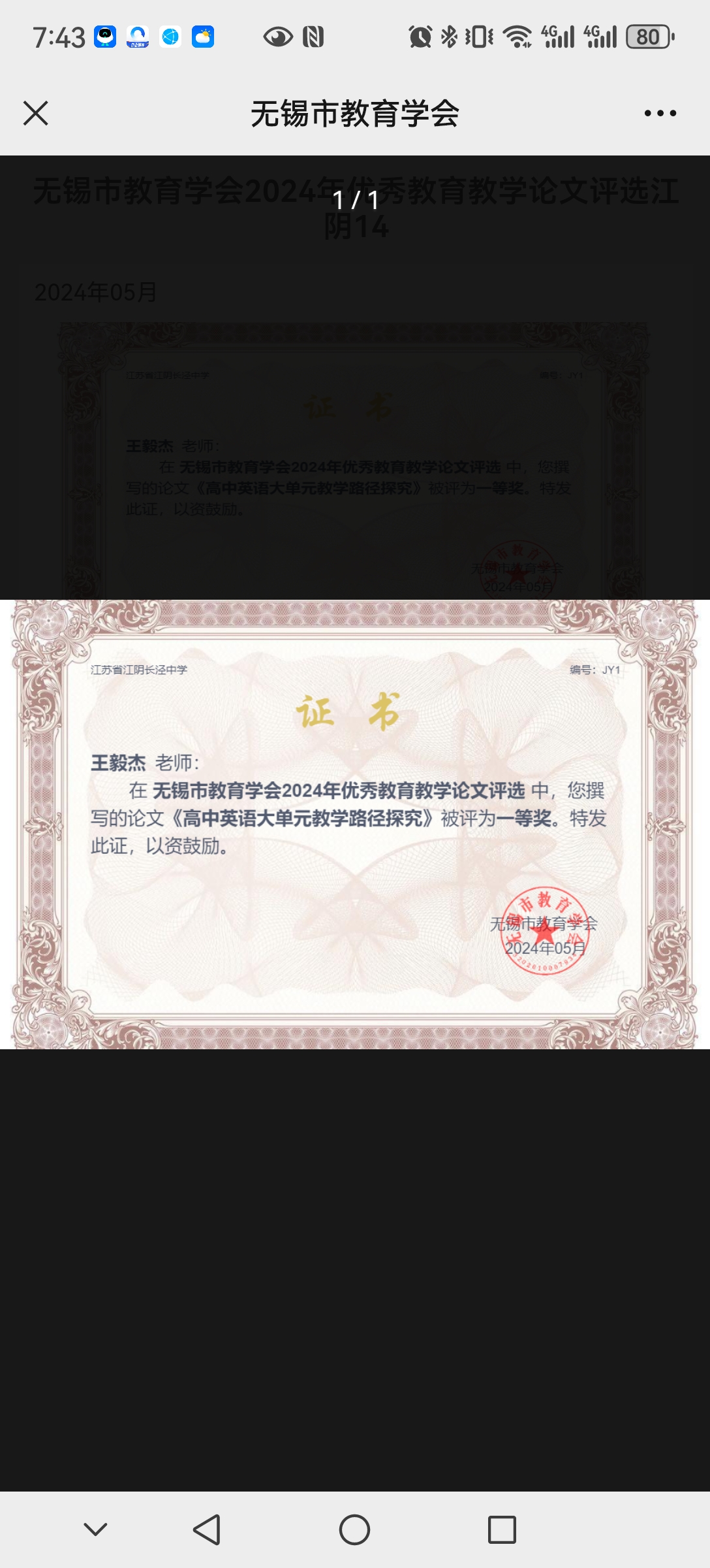 王毅杰老师获论文比赛一等奖