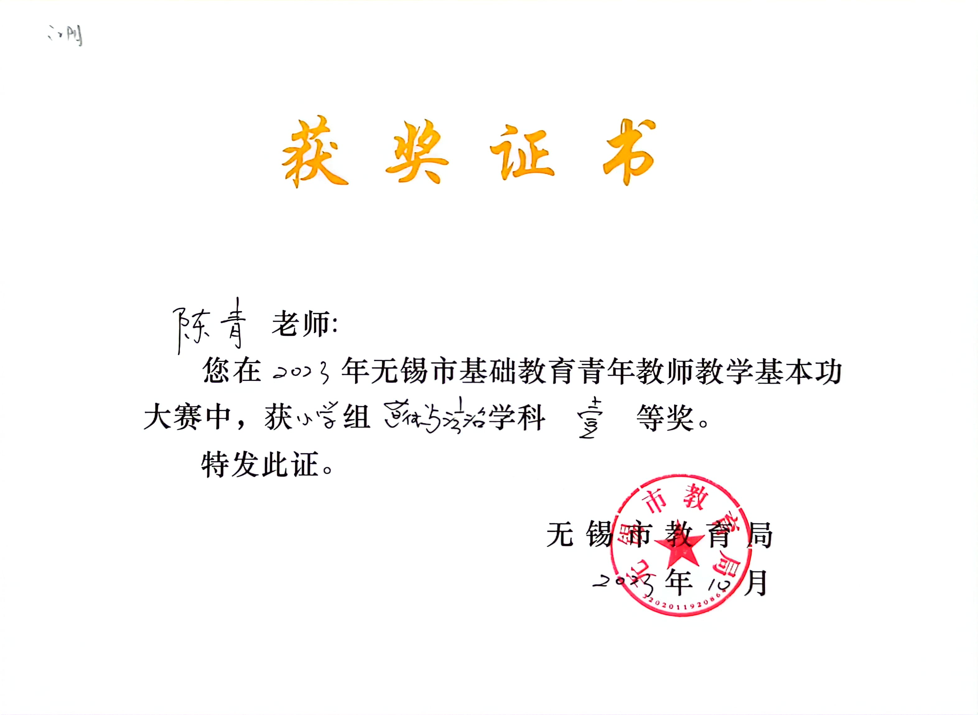 无锡市基础教育青年教师教学基本功大赛(陈青)