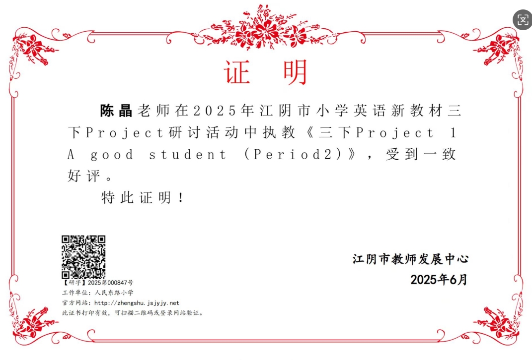 陈晶老师获江阴“基础教育精品课”二等奖~~