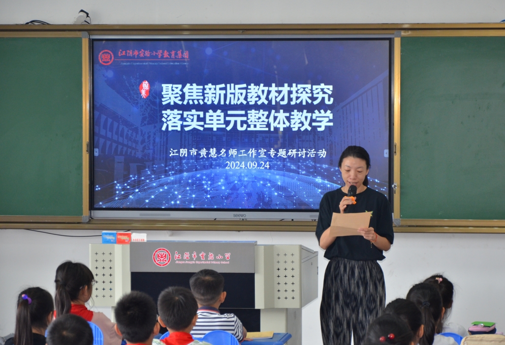 金风送爽,硕果飘香,一切美好如约而至。为了聚焦“新课标,新教材,新教学”,更好地帮助教师专业成长,把单元整体教学落实到课堂实践中,2025年9 月24 日,江阴市黄慧名师工作室“聚焦新版教材探究,落实单元整体教学”课堂教学研讨活动在江阴市实验小学教育集团隆重举行。