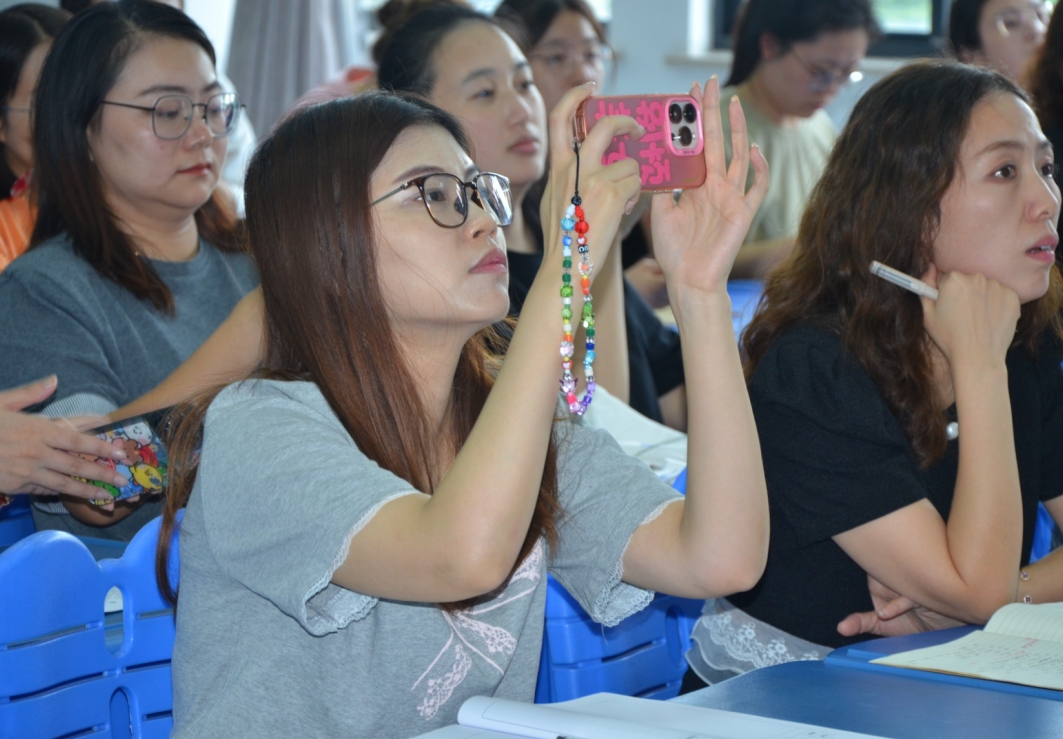 本次活动由工作室成员朱虹主持,江阴市黄慧名师工作室导师黄慧校长、工作室全体成员以及江阴市实验小学教育集团全体英语教师近 100 人参加,大家在活动中同频共振,携手共进。