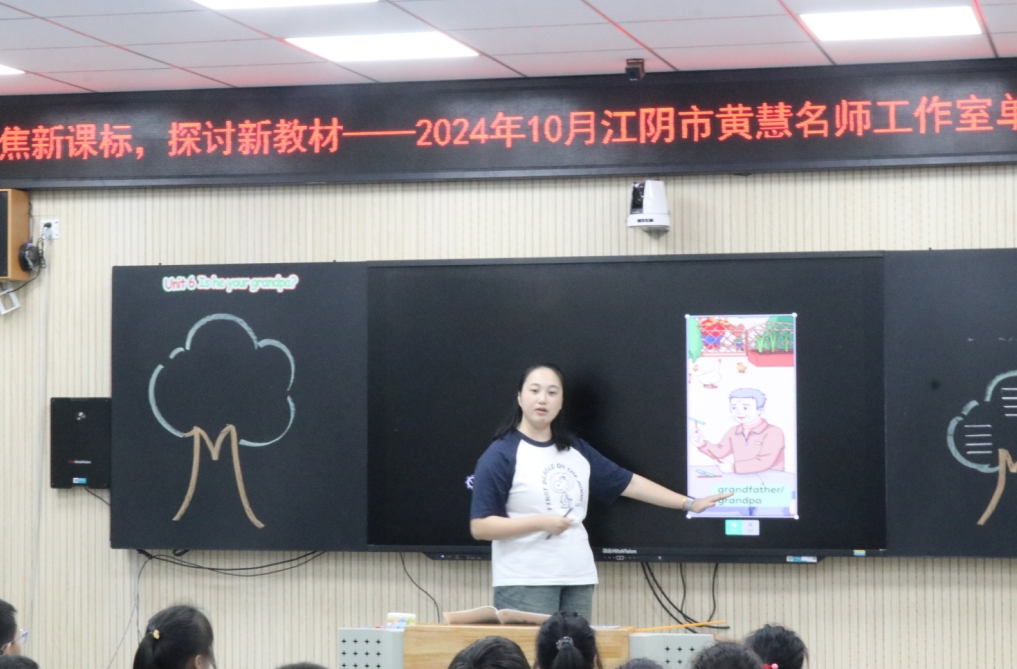 本次活动由工作室成员叶佳老师主持。江阴市黄慧名师工作室导师黄慧校长,工作室全体成员及辅延教育集团全体英语老师参与了此次活动。本次活动聚焦译林版新教材三年级上册Unit6 Is he your grandpa?活动分为三个部分,课例展示、单元整理教学设计分析和导师总结。大家在活动中同思考,共前行。