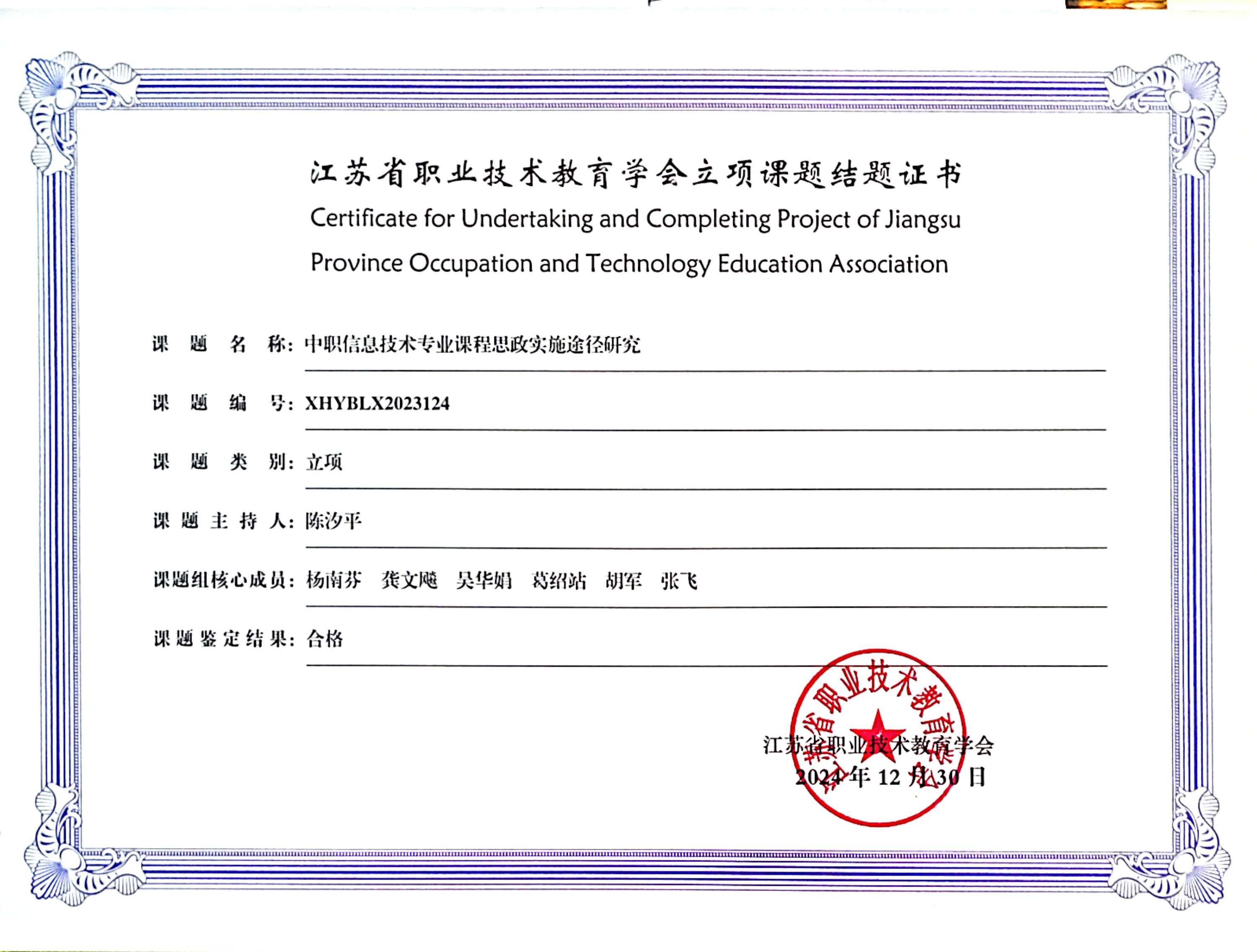 汤明清工作室成员省级课题《中职信息技术专业课程思政实施途径研究》结题
