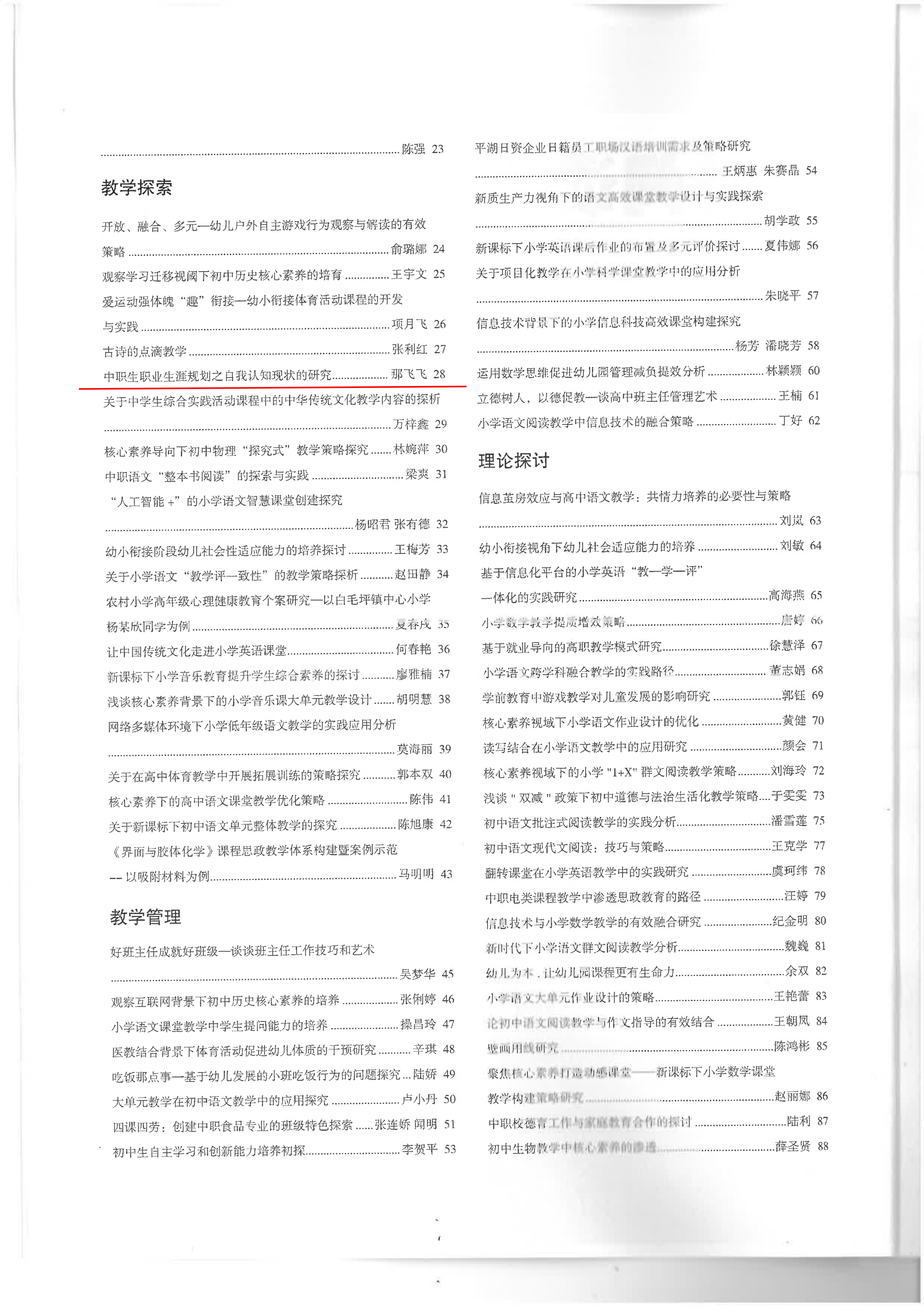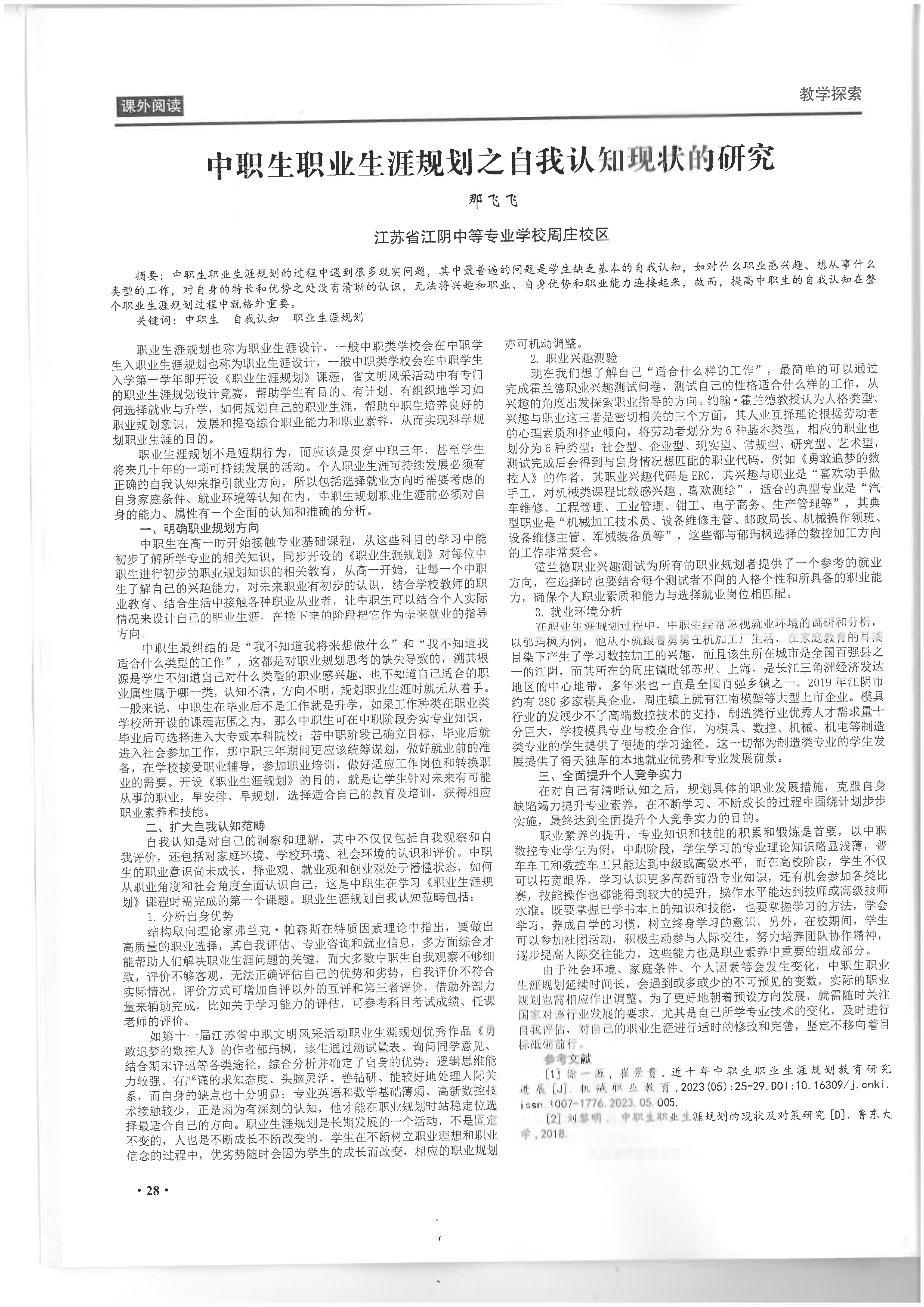 那飞飞:论文《中职生职业生涯规划之自我认知现状的研究》发表于《课外阅读》 2025-09-02